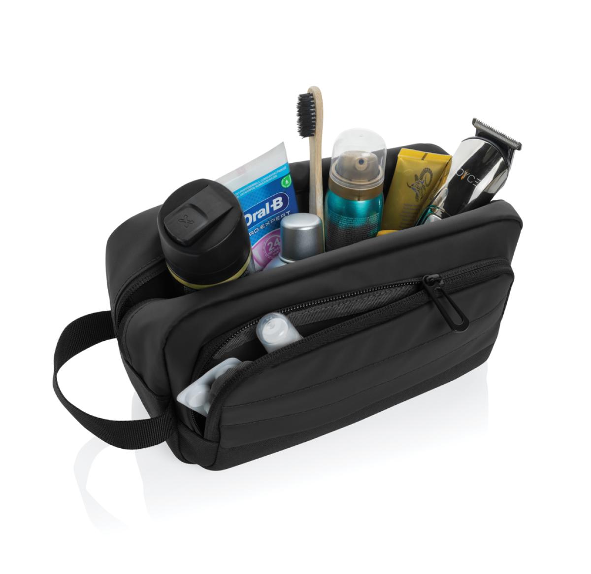 Keep your toiletries stylishly stowed and neatly organised while you're on-the-go. It boasts a spacious main compartment, with plenty of room for your grooming essentials. A front zippered pocket provides additional storage space for small necessities. With AWARE™ tracer that validates the genuine use of recycled materials. 2% of proceeds of each Aware™ product sold will be donated to Water.org. PVC free.