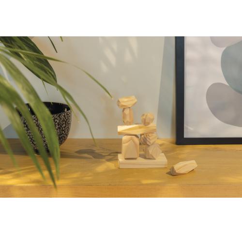Upgrade your interior and have some fun with these Ukiyo pine wood balancing rocks. Test your balancing skills and build a beautiful centre piece for your indoor space. Crafted from high-quality FSC®pine wood and packed in a GRS certified recycled polyester pouch. The natural grain of the wood adds a unique and rustic feel to any space.