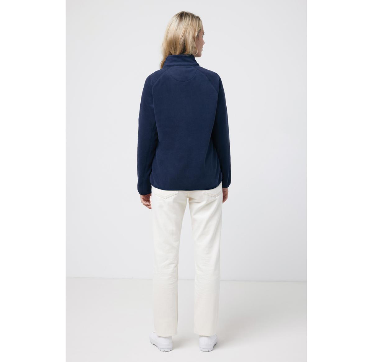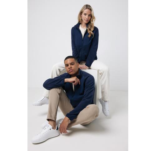 Unisex microfleece zip-through jacket made from 100% post-consumer recycled polyester in 240 G/M² with anti pilling finish. This style is perfect for seasonal layering. The soft and comfortable fleece jacket has a reversed front zipper and practical zip pockets integrated into diagonal seams. Designed for style and comfort, it features raglan sleeves, elastic binding at the bottom hem and cuffs and distinctive 3-needle flatlock top stitch for a sporty look. The woven fabric panel at the chest and at the inside back neck offers a good placement for personalised decoration. The use of genuine recycled & organic fabric materials and environmental impact claims are guaranteed, by using the AWARE™ disruptive physical tracer and blockchain technology. By scanning the QR code, you will gain access to a dedicated digital passport of the product. 2% of proceeds of each sold product will be donated to Water.org. This product is OEKO-TEX® STANDARD 100 certified.