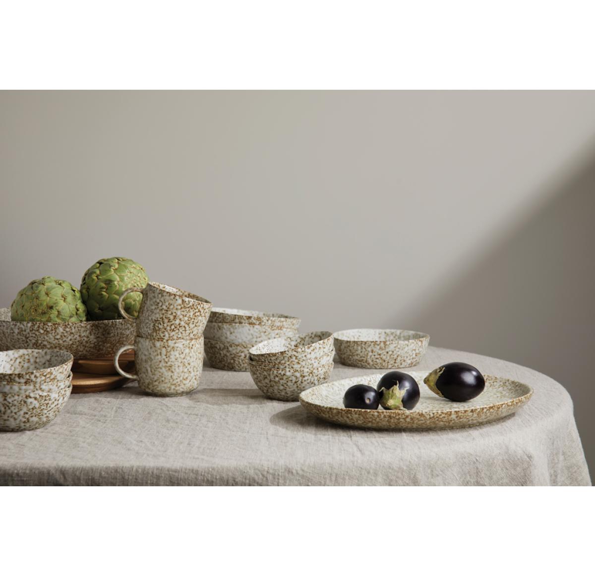 Three-piece stoneware bowl. With its unique, organic uneven shapes and hand-glazed finish, each piece is one-of-a-kind and sure to impress your guests. Crafted from durable stoneware, it is designed to last and withstand the wear and tear of daily use. These bowls are dishwasher-safe for easy cleaning and maintenance. Not suitable for use in the microwave or oven.