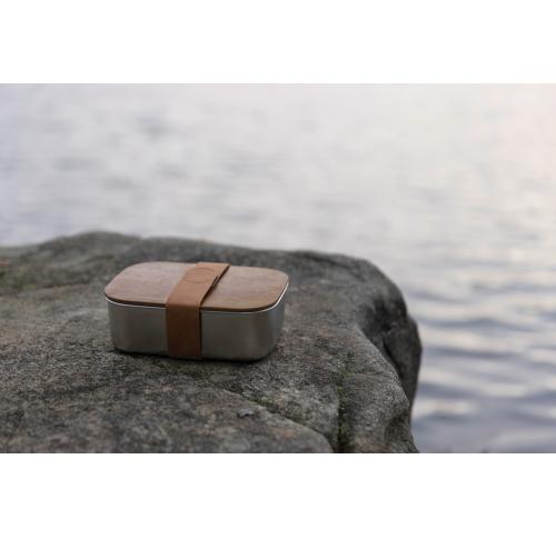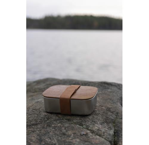 Ciro RCS recycled steel lunch box is a practical and eco-friendly lunch solution that is designed with care for both functionality and environmental awareness. The lid, made of FSC®-certified acacia wood, features a convenient PU strap with velcro closure, ensuring secure transport. With this lunch box, you can easily enjoy your meals while taking a step towards reducing the use of disposable containers and plastic. Certified by RCS (Recycled Claim Standard), RSC certification guarantees that the entire supply chain of recycled materials is certified. The total recycled content is based on the overall product weight. This product contains 36% RSC-certified recycled stainless steel. Easy to clean. Handwash only. Including FSC®-certified kraft packaging.