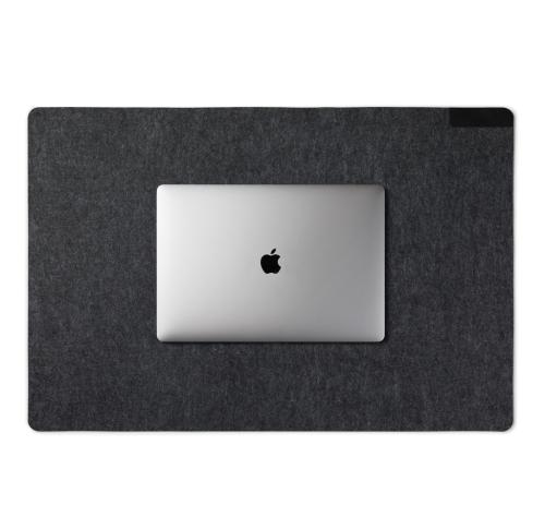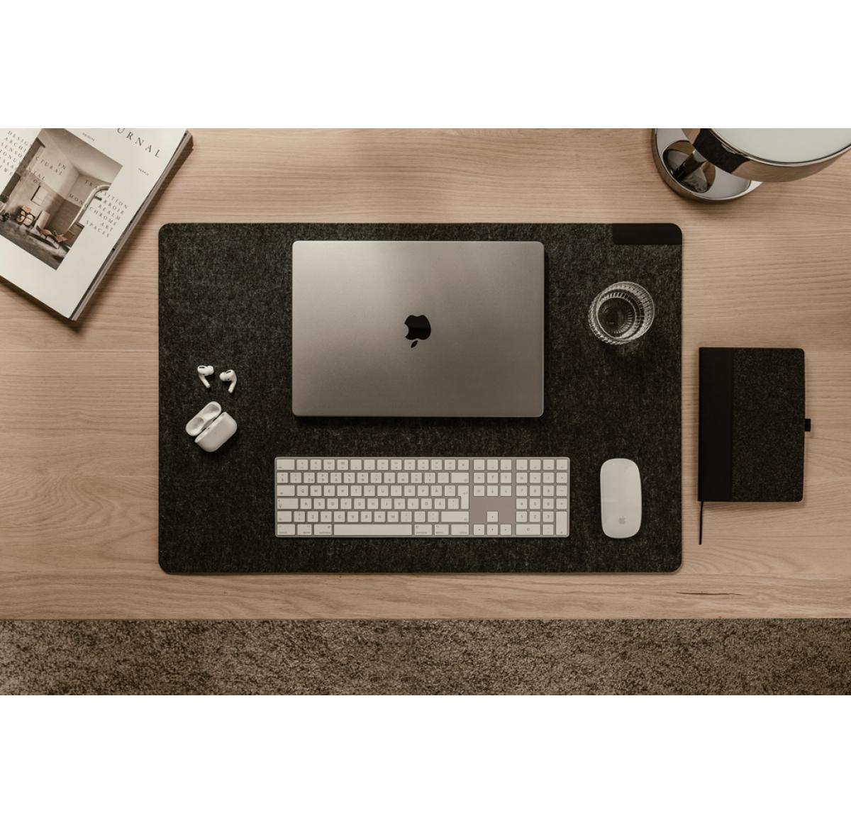 Spacious desk pad tailored for the contemporary office. Designed with a sleek, clean aesthetic using GRS recycled felt with a mélange effect. Anti-slip dots on the reverse guarantee stability, ensuring the pad remains firmly in position. Size: 75x50cm. Certified by GRS (Global Recycled Standard), GRS certification guarantees that the entire supply chain of the recycled materials is certified. The total recycled content is based on the overall product weight. This product contains 89% GRS recycled felt.