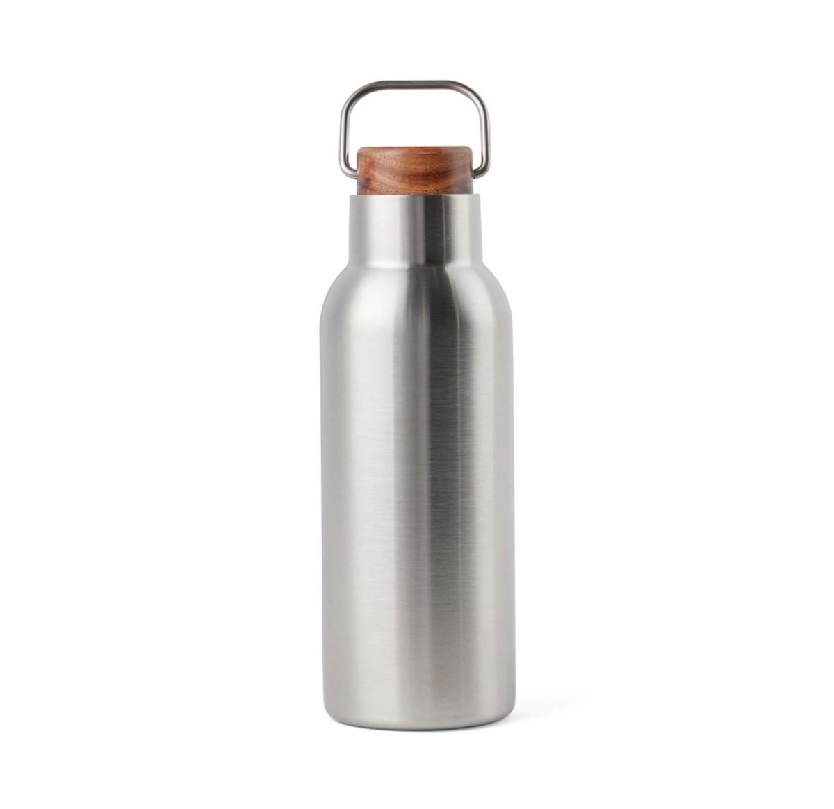 Ciro RCS recycled vacuum bottle is an elegant and functionally designed thermos bottle. The bottle has a lid of acacia wood with a metal loop, which makes the bottle easy to carry with you when you're on the go. The vacuum construction with double walls in recycled stainless steel ensures that the bottle keeps the temperature intact for a long time. Takes both hot and cold drinks. Certified by RCS (Recycled Claim Standard), RSC certification guarantees that the entire supply chain of the recycled materials is certified. The total recycled content is based on the overall product weight. This product contains 76% RSC-certified recycled stainless steel. The bottle is easy to clean and should only be cleaned by hand. Including FSC®-certified kraft packaging.