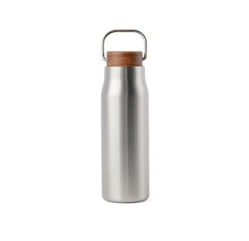 Ciro RCS recycled vacuum bottle is an elegant and functionally designed thermos bottle. The bottle has a lid of acacia wood with a metal loop, which makes the bottle easy to carry with you when you're on the go. The vacuum construction with double walls in recycled stainless steel ensures that the bottle keeps the temperature intact for a long time. Takes both hot and cold drinks. Certified by RCS (Recycled Claim Standard), RSC certification guarantees that the entire supply chain of the recycled materials is certified. The total recycled content is based on the overall product weight. This product contains 69% RSC-certified recycled stainless steel. The bottle is easy to clean and should only be cleaned by hand. Including FSC®-certified kraft packaging.