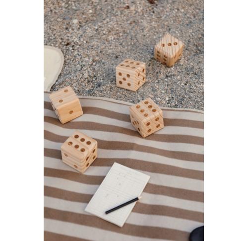 The outdoor yacht game is the classic dice game that is perfect for lovely outdoor days. The goal of the game is to get the highest possible score by rolling and combining the dice in different ways. The game is easy to learn and can be played by all ages. 5 dice, measuring 7x7x7cm, a notepad and pencil is included. Packed in a cotton bag. Manual included. All wooden parts are crafted from high-quality FSC®-certified pinewood, ensuring wood from responsibly managed forests.