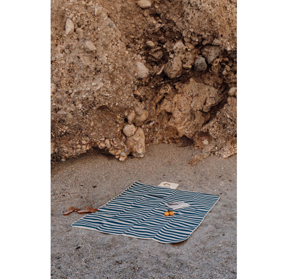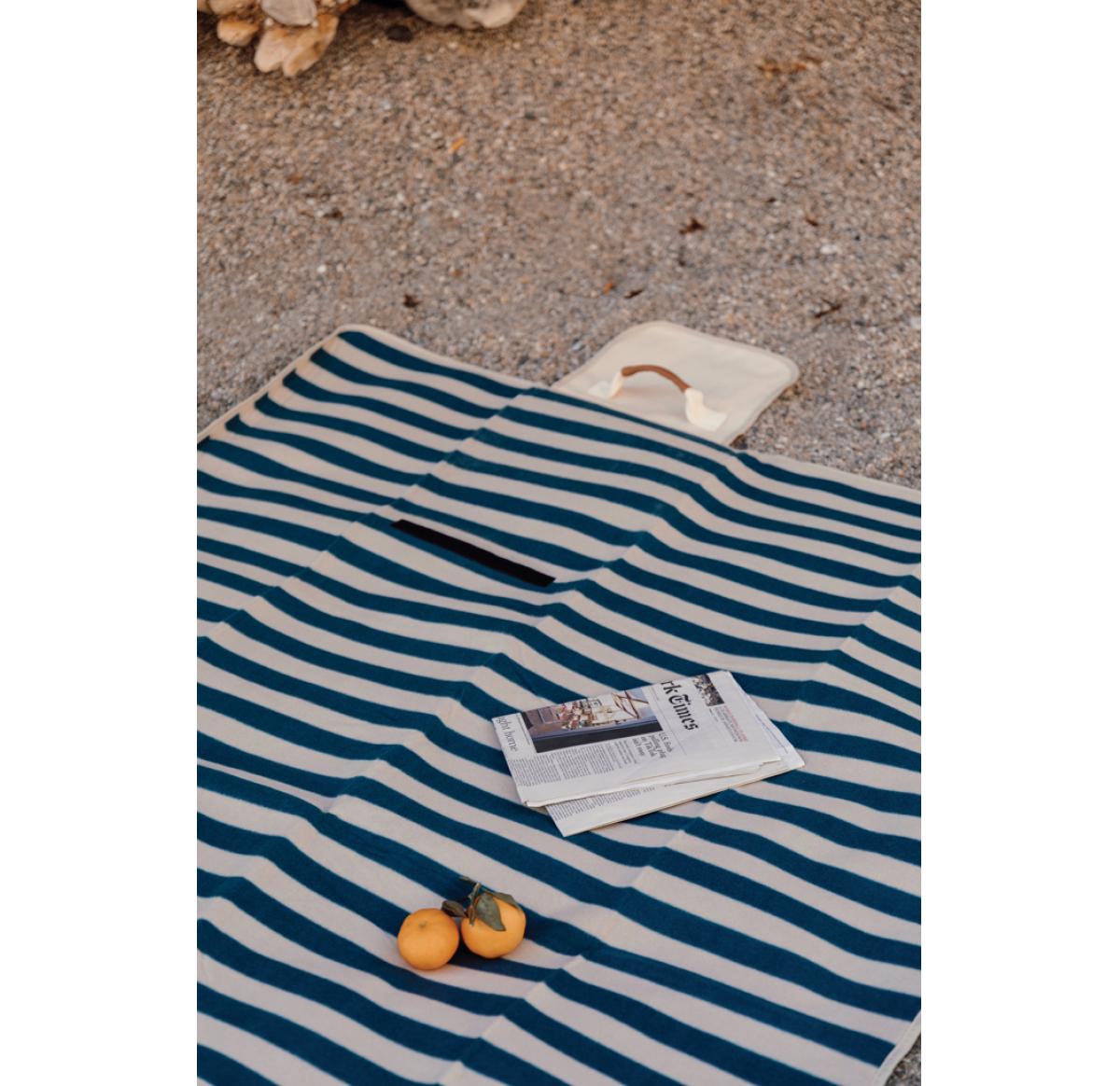 Recycled Picnic Blanket Large Navy Striped VINGA Alba GRS RPET