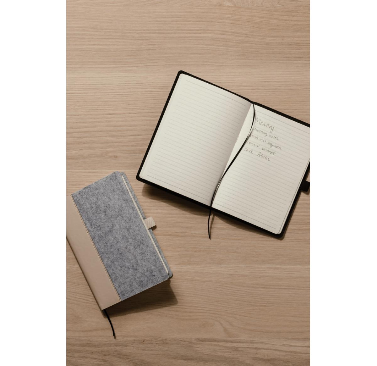 Promotional Branded A5 Recycled Felt Notebooks Grey VINGA Albon GRS