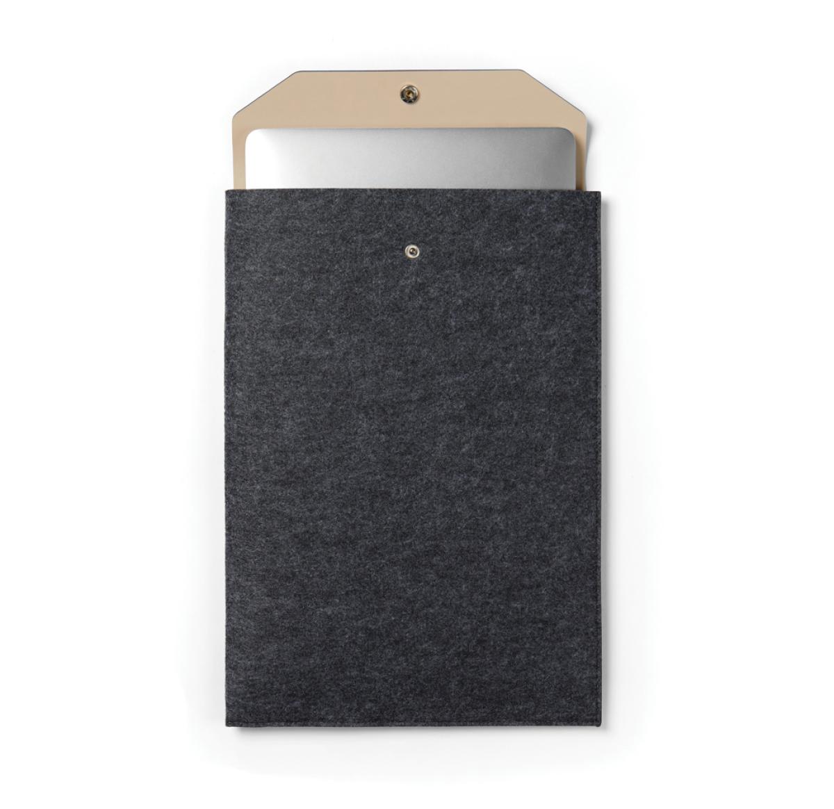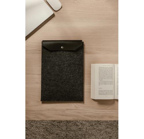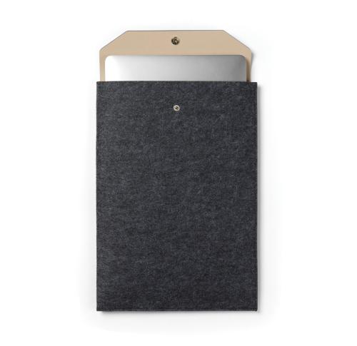 Laptop sleeve designed with a sleek, clean aesthetic using GRS recycled felt with a mélange effect. This sleeve effectively protects your computer from bumps and moisture. It features a PU flap opening for easy access and added elegance. The inner dimensions of this case are 34x2.5x24 cm, making it suitable for computers with an overall size of 14 inches. Please note that the dimensions of the display are not the same as the dimensions of the entire computer. Certified by GRS (Global Recycled Standard), GRS certification guarantees that the entire supply chain of the recycled materials is certified. The total recycled content is based on the overall product weight. This product contains 82% GRS recycled felt.
