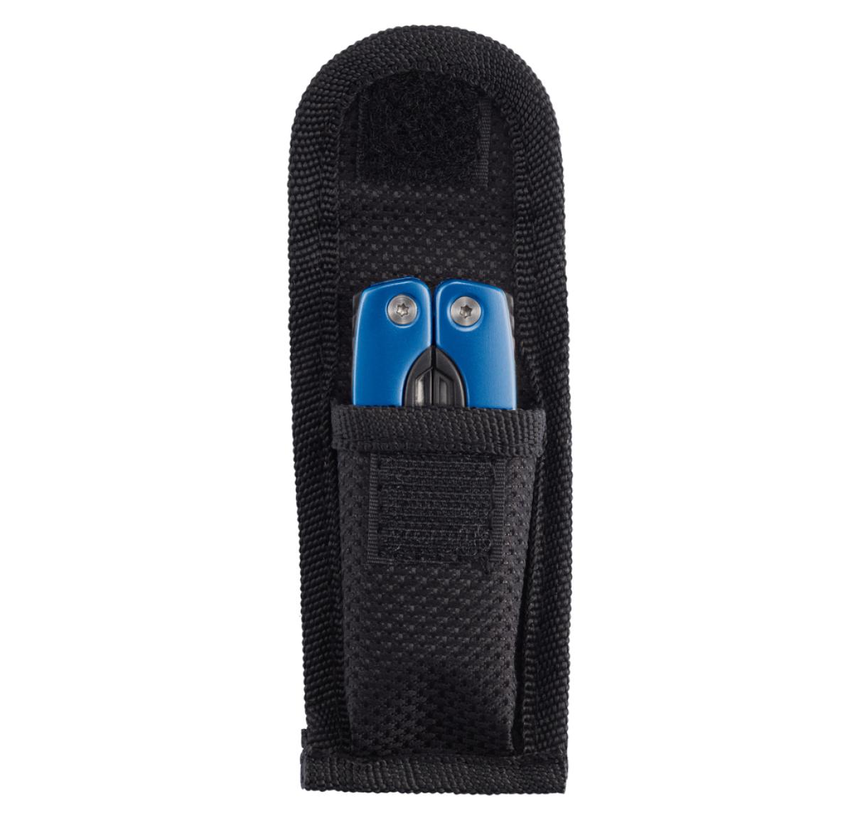13 functions, stainless steel multitool with aluminium anodised handle. Including black pouch.