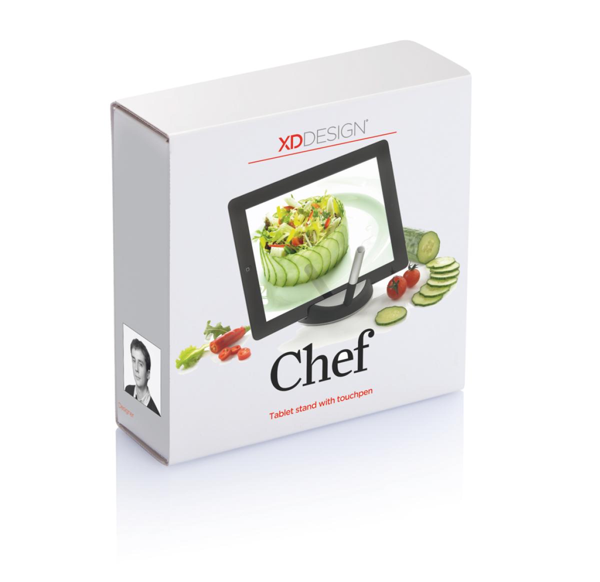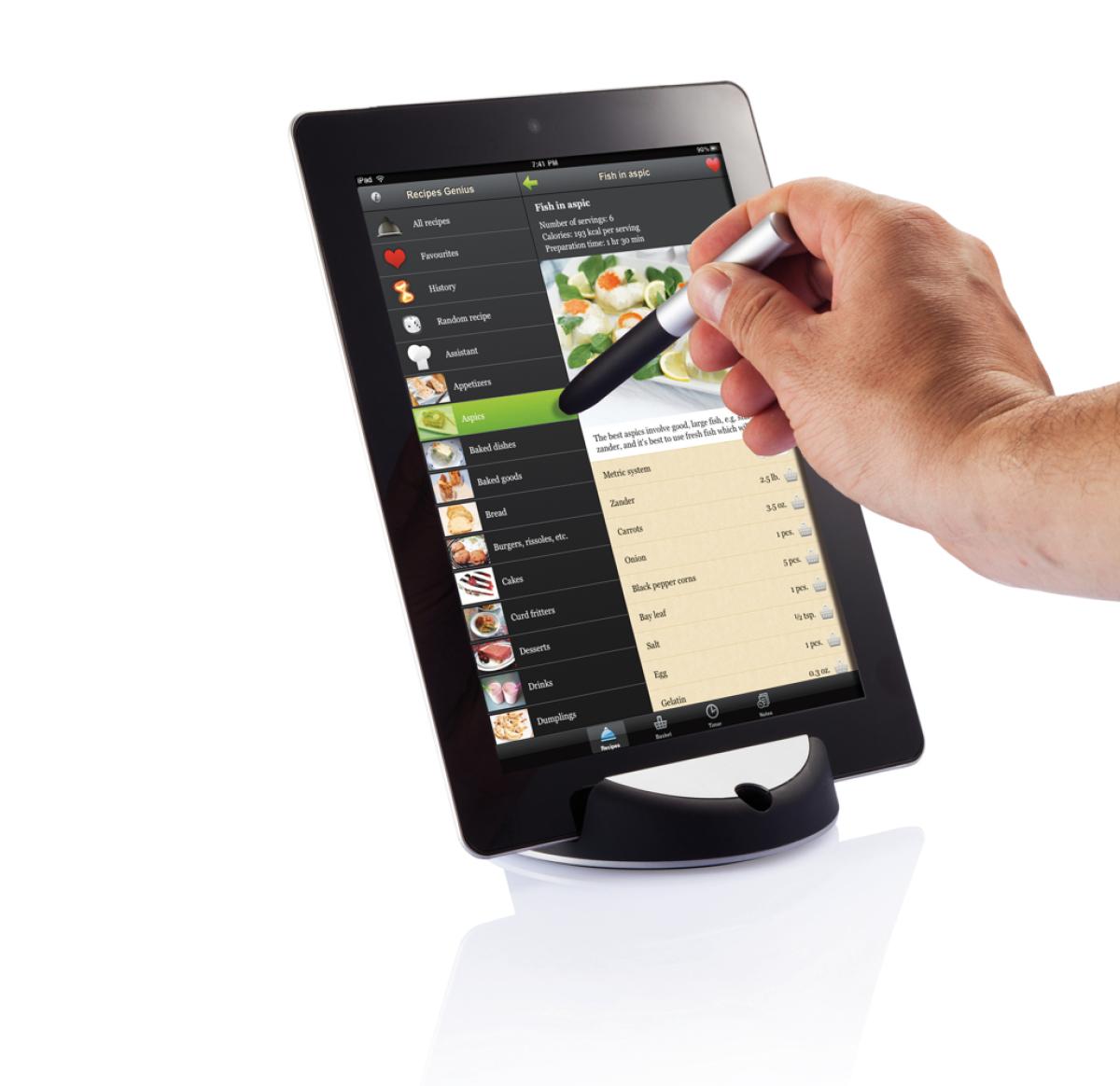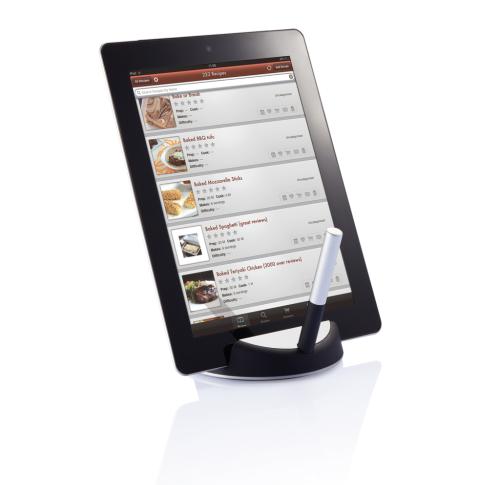 Chef is the tablet stand for all modern and creative chefs. The sturdy touch pen makes it easy to use your tablet under steamy kitchen circumstances without leaving any traces of food on your tablet. Registered design®
