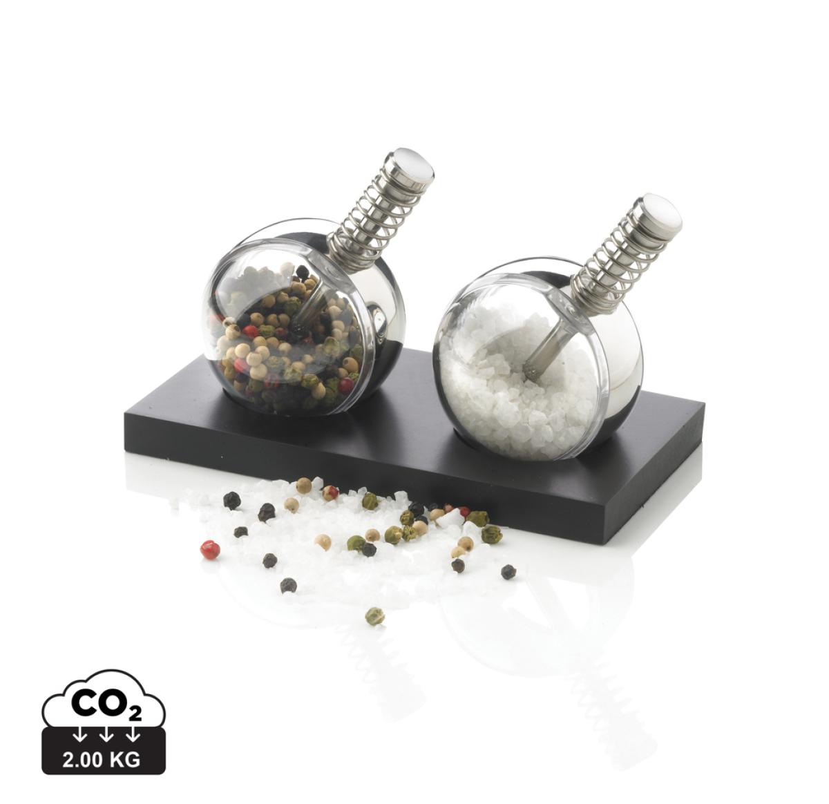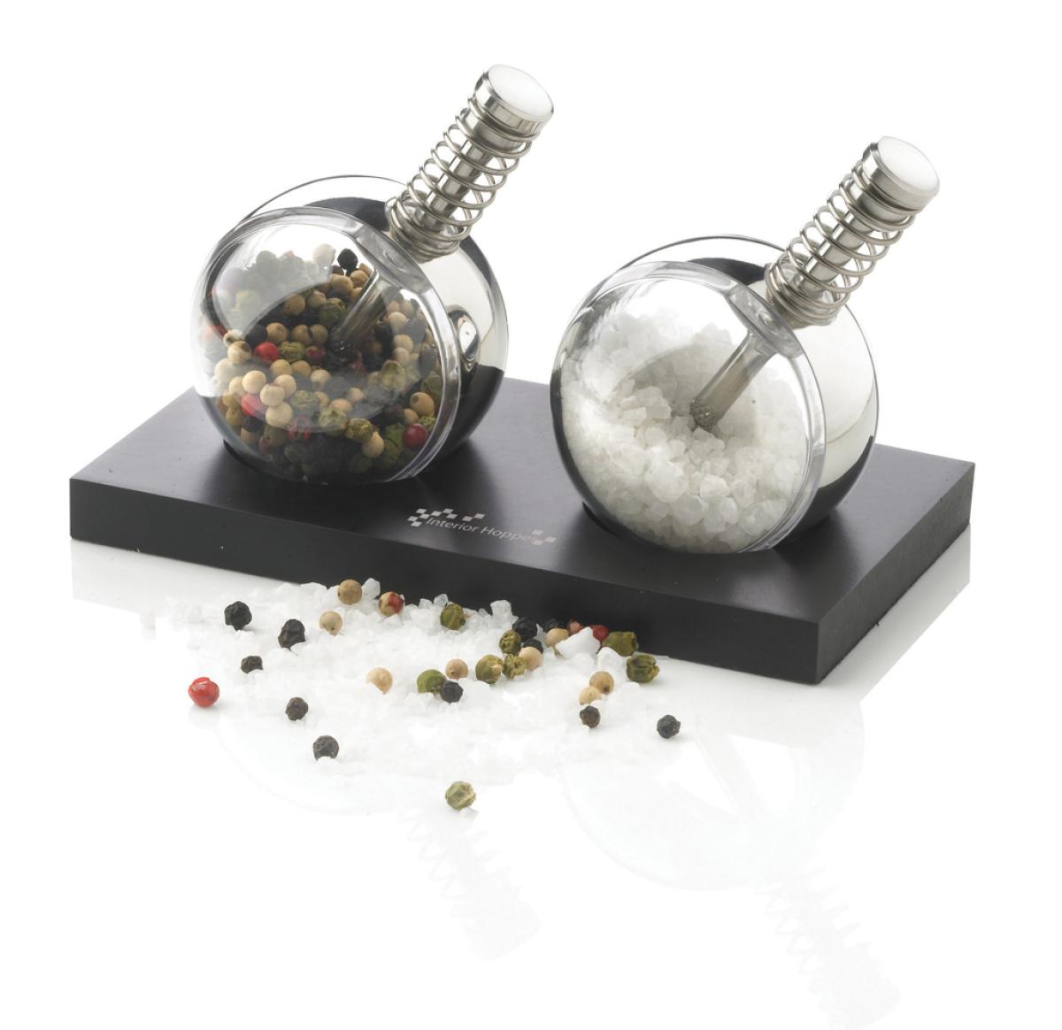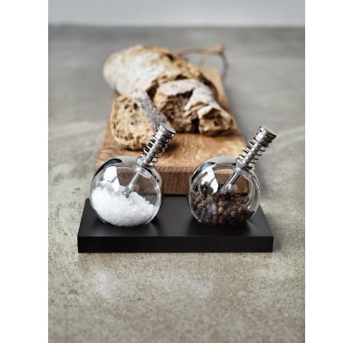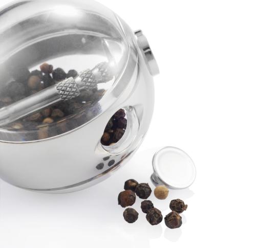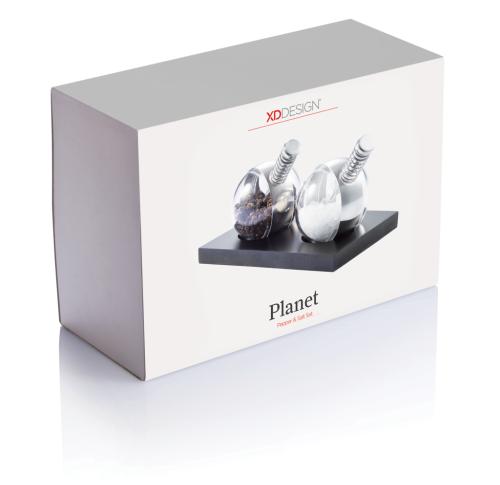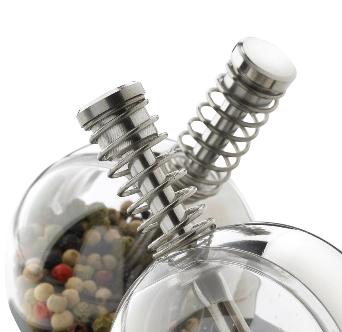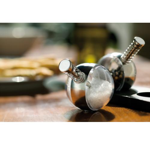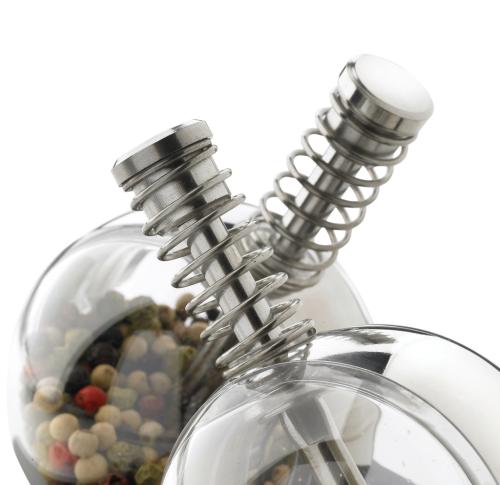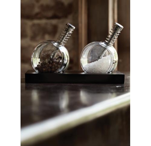 Planet is a stylish pepper and salt set that has a unique spring-action design in each grinder that allows convenient one-hand operation. As the globes are transparent it’s easy to see your sea salt and peppercorn levels. Registered design®