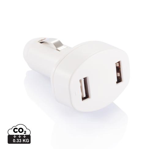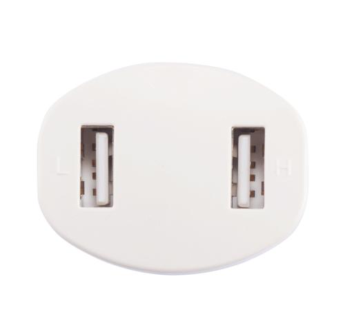 Portable ABS connector that has two USB ports with one output of 5V/2.4A and one output of 5V/2.4A to charge your mobile phone, iPhone,Ipod or tablet.
