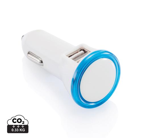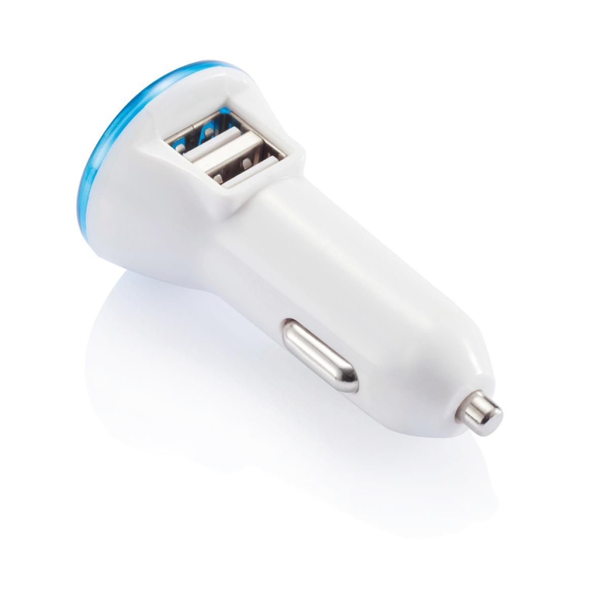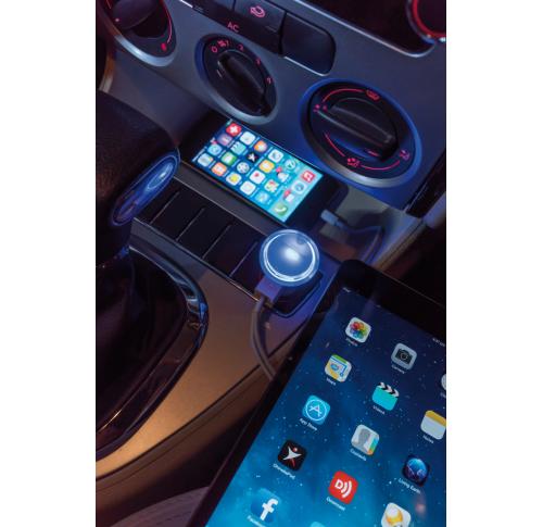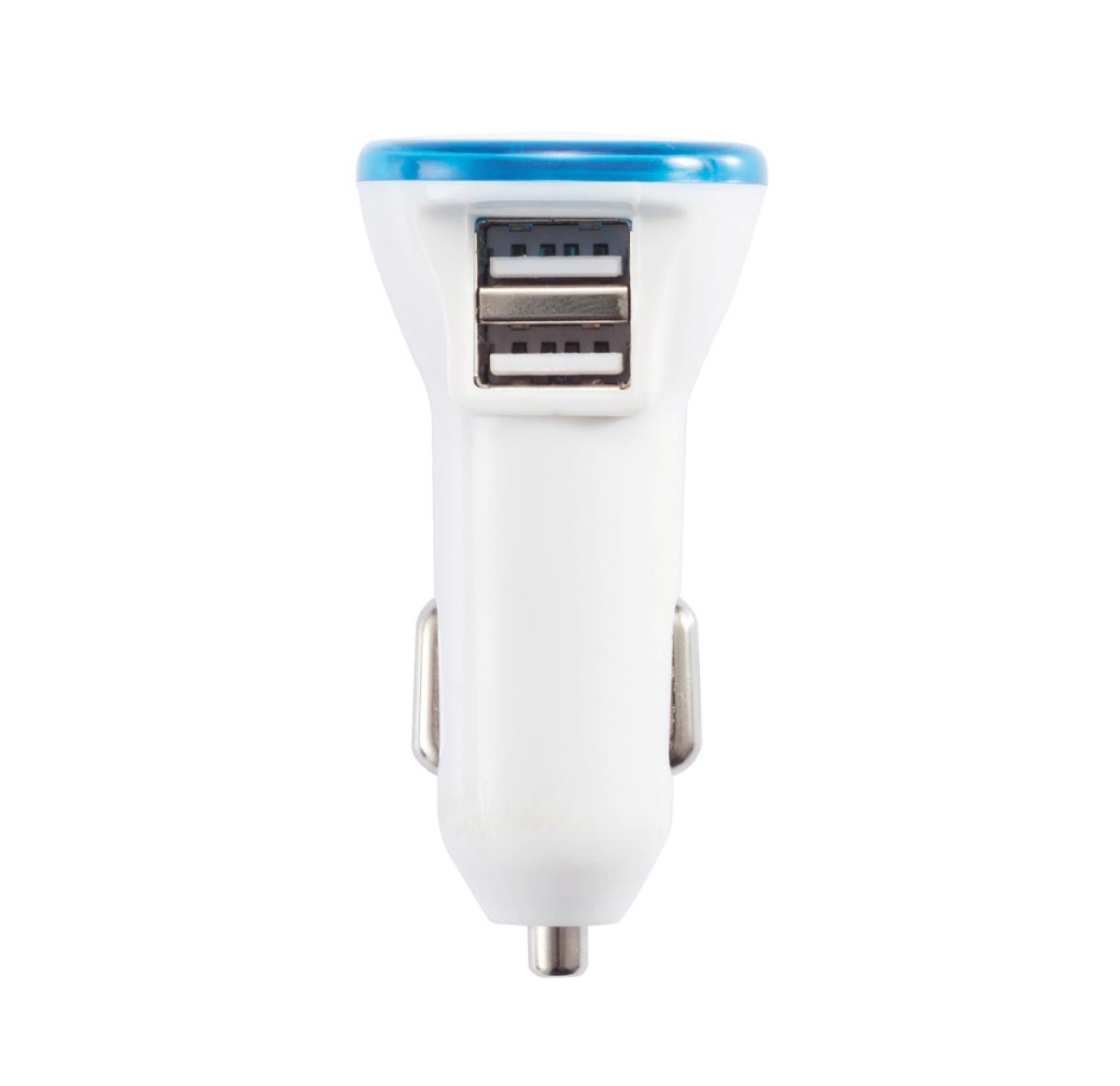 Portable connector with double USB port and integrated LED light on top. Output: 5V/2.1A