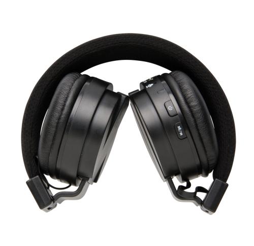 Wireless foldable headphone. The headphone is made out of ABS with an extendable polyester headband to fit all sizes. With comfortable PU earpads to listen to your favourite tunes for up to 4 hours on one single charge. The headphone uses wireless BT 2.1