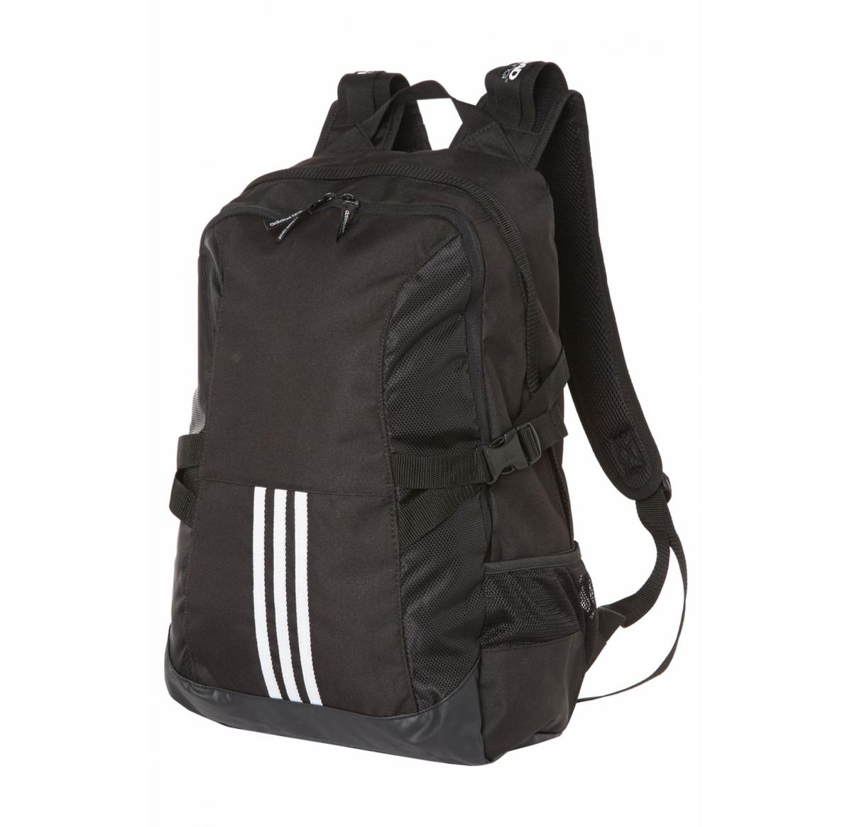 Main compartment with padded laptop compartment. Front accessories compartment with organiser. Two side mesh-pockets. Lateral compression straps. Quick grab handle on top. Padded mesh back for ventilation. Padded and spring-loaded adjustable shoulder straps - H52 x W32 x D16cm