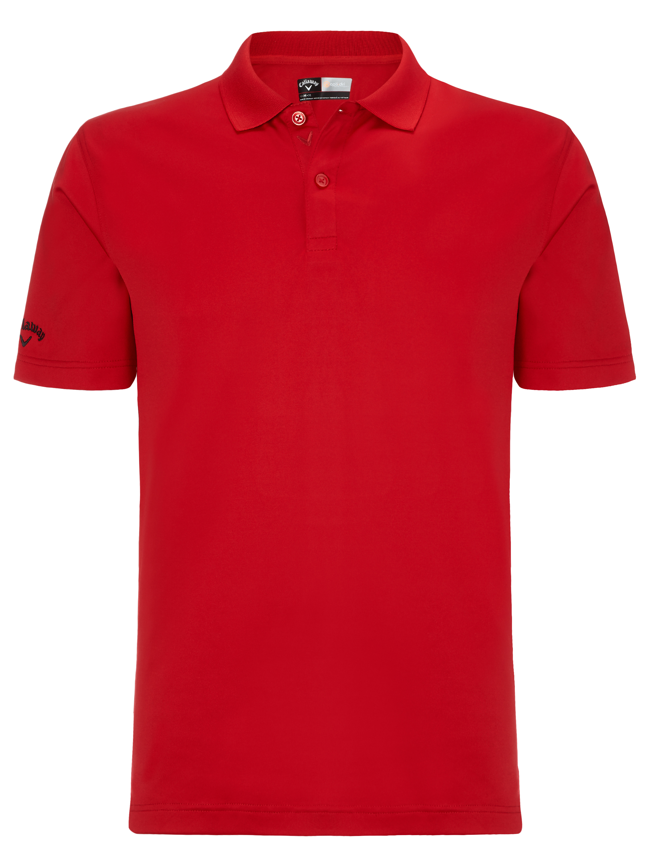 A classic polo shirt, made from a textured moisture-wicking fabric. Features Chevron logo on the centre back of the collar and full Callaway logo on the right sleeve.