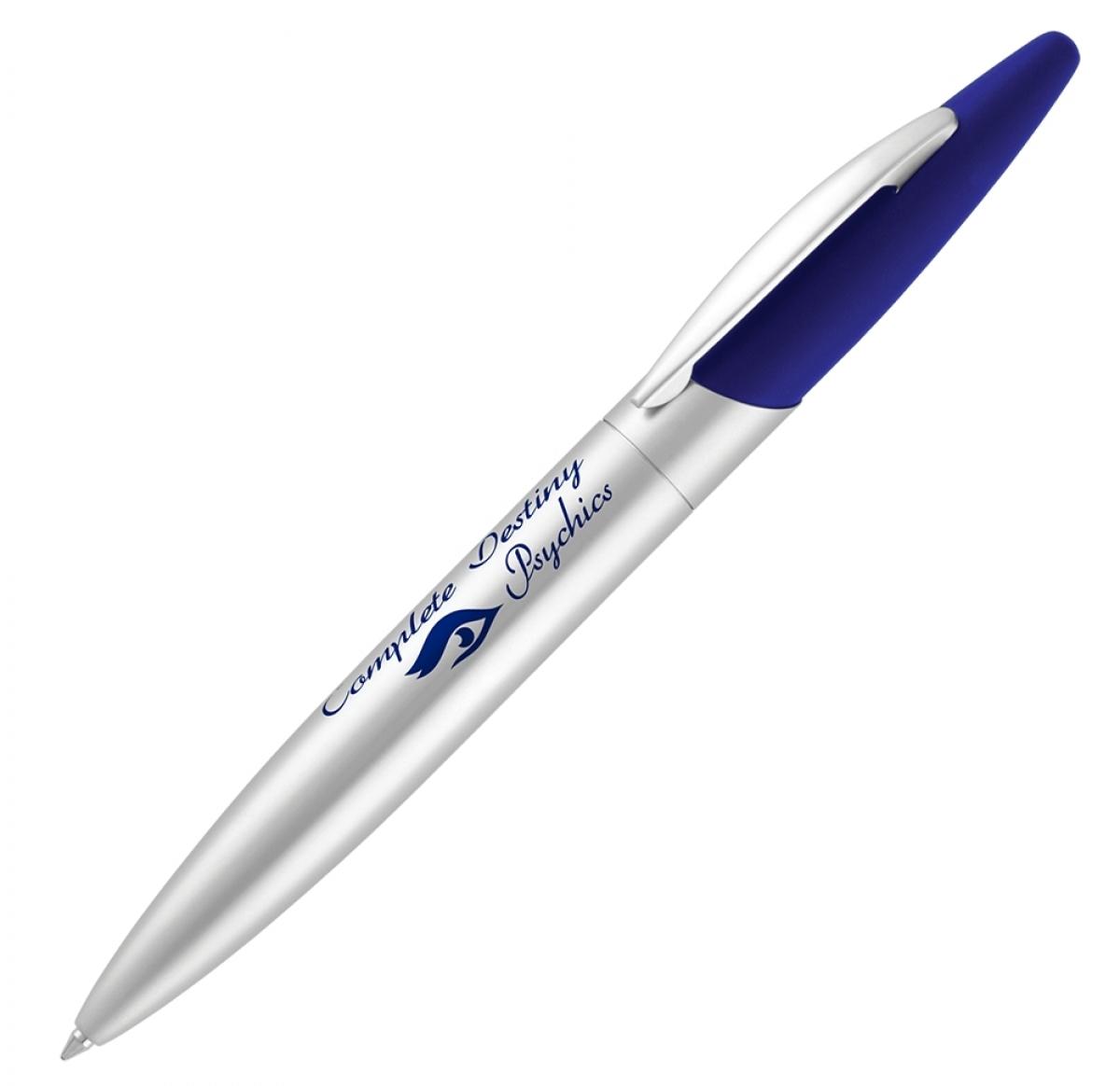 Sleek metallic twist-action ballpen, very tactile with classy satin silver finish.