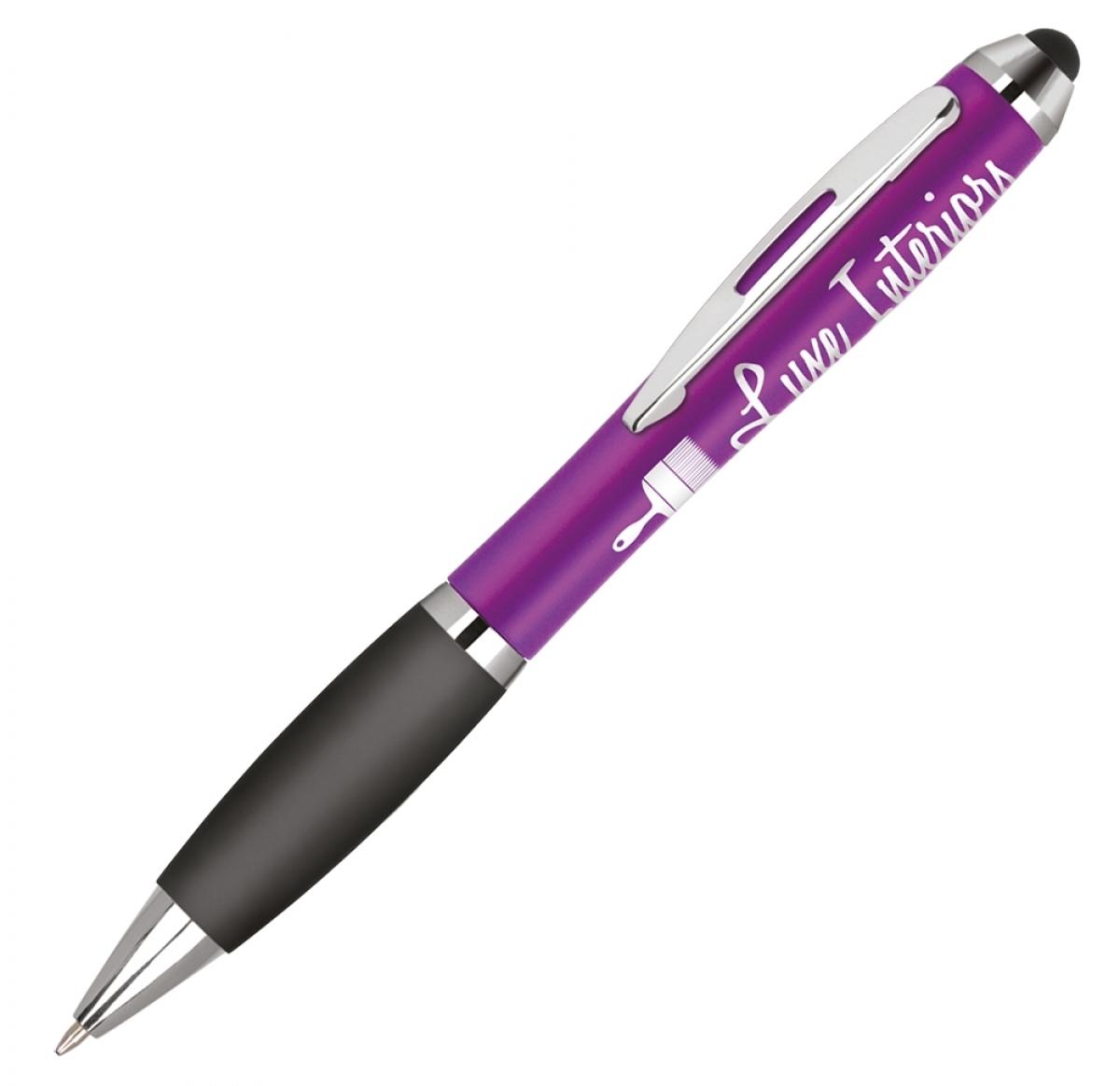 Retractable Ballpen with capacitive stylus. Frosted barrel and comfortable black rubber grip.
