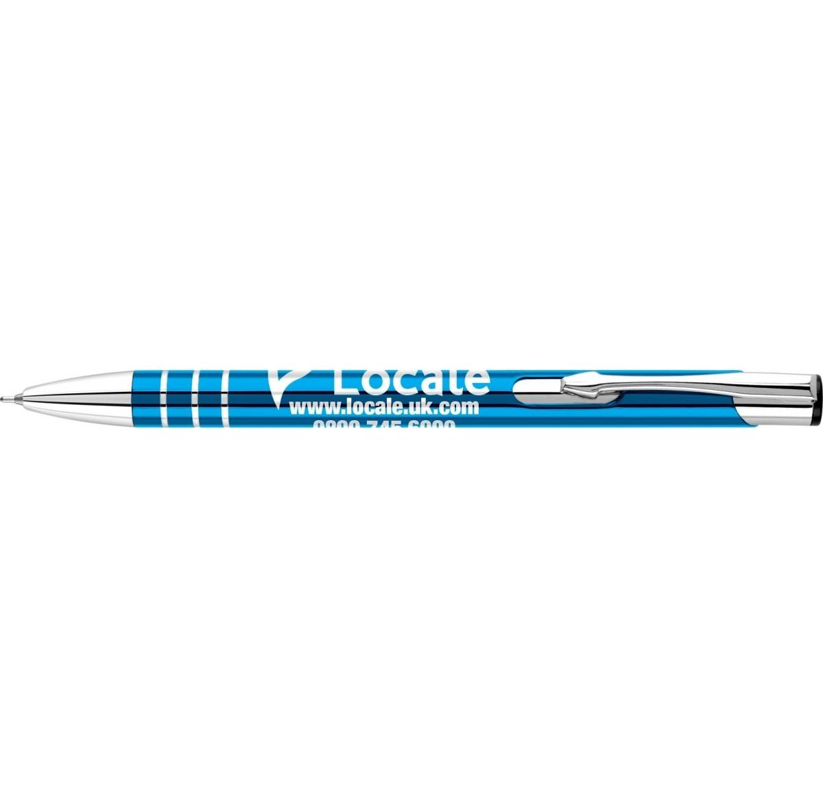 Attractive alluminium pen with Inkredible writing ink with anodised finish and chrome trim. The unique positioning of the chrome rings, give this pen a much larger print area than standard.