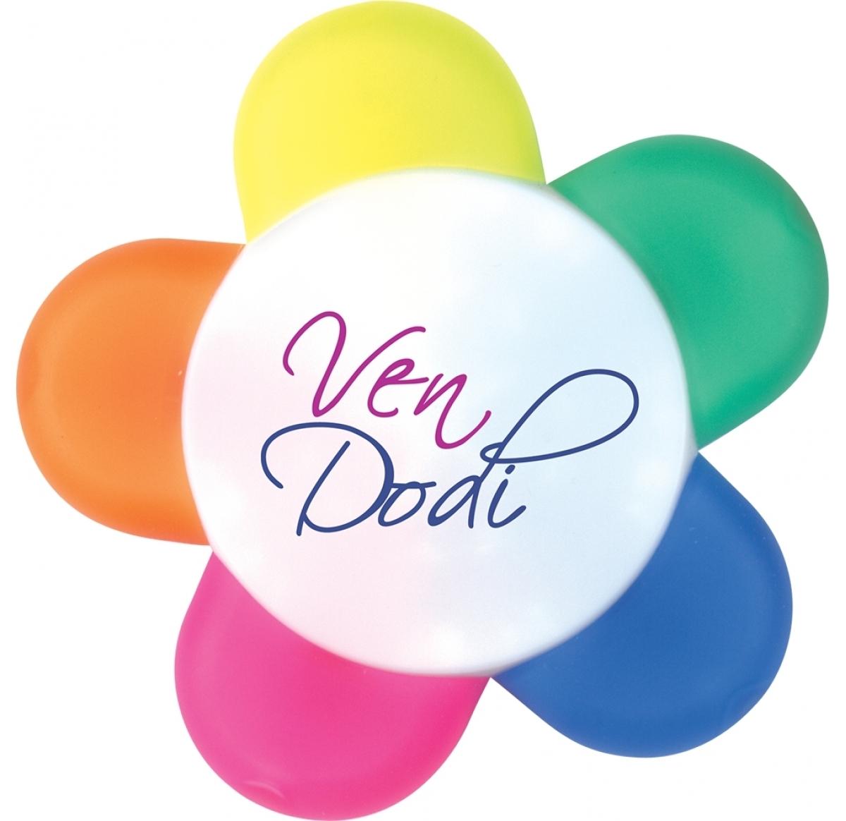 Quality flat highlighter manufactured in imprintable plastic. Highlighter contains 5 popular colours. Please note the petal colour layout may vary.