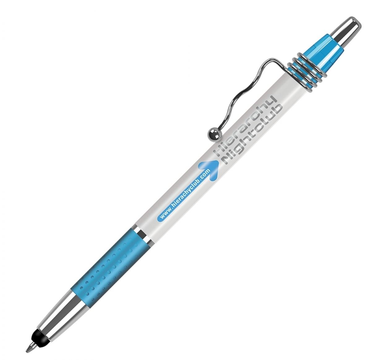 Touch Screen ballpen with a coloured rubberised grip & metal coil clip. Screen printing is available over most of the barrel.