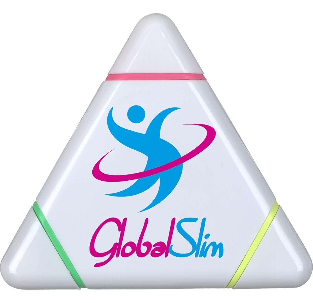 Three highlighters in one. Manufactured from imprintable plastic. Available on a 24-Hour Express at no extra cost. (Single colour printing, max 5,000 pcs).