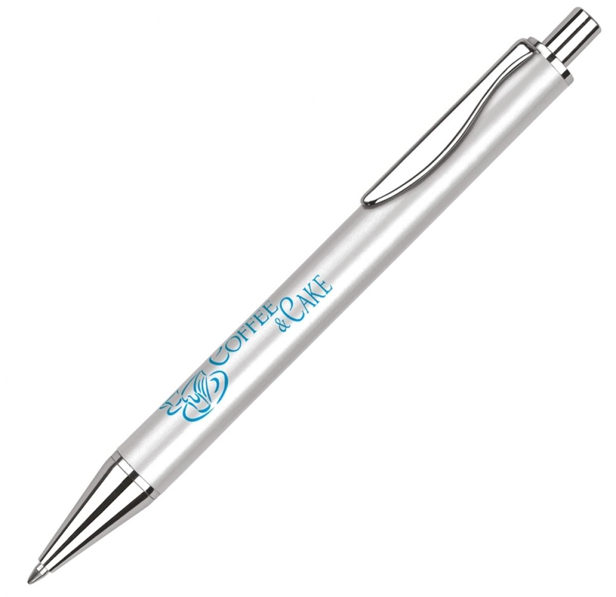 Retractable metal ballpen with satin silver barrel and chrome trim. Also available as matching rollerball.