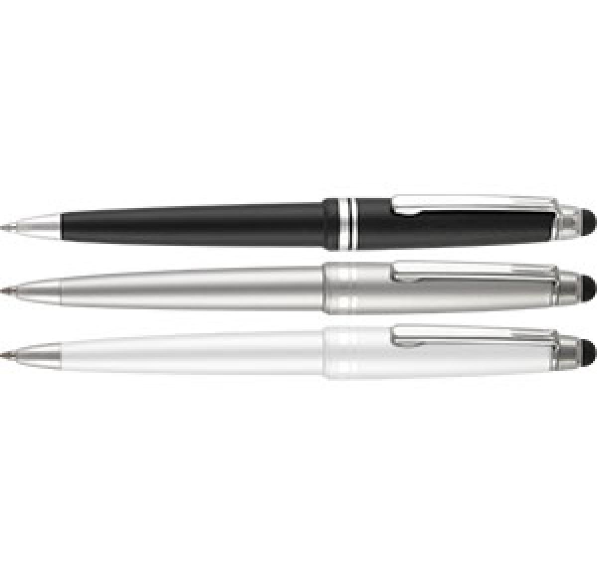 Traditional cap-action ballpen with chrome trim , featuring a capacative stylus