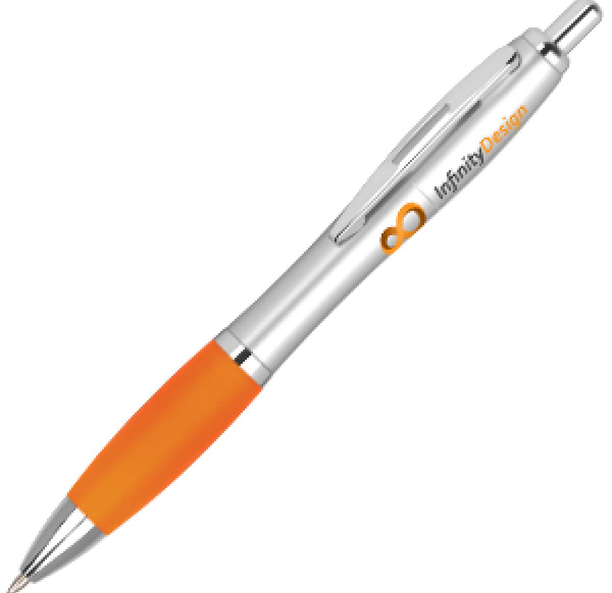 Push button Ballpen with satin silver barrel. Newly patented barrel has been designed to exploit the full potential of the digital printing process. This allows for a degree of print quality not available from competitors.