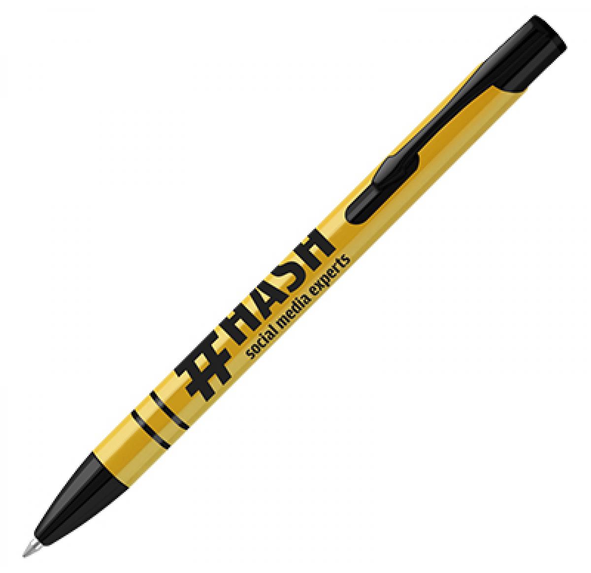 A bold twist on the best-selling Electra Ballpen, the Electra Noir Ballpen has a high gloss finish in a range of daring colours. The black trim adds to the contemporary design while the positioning of the rings allows a large area for spot colour printing??