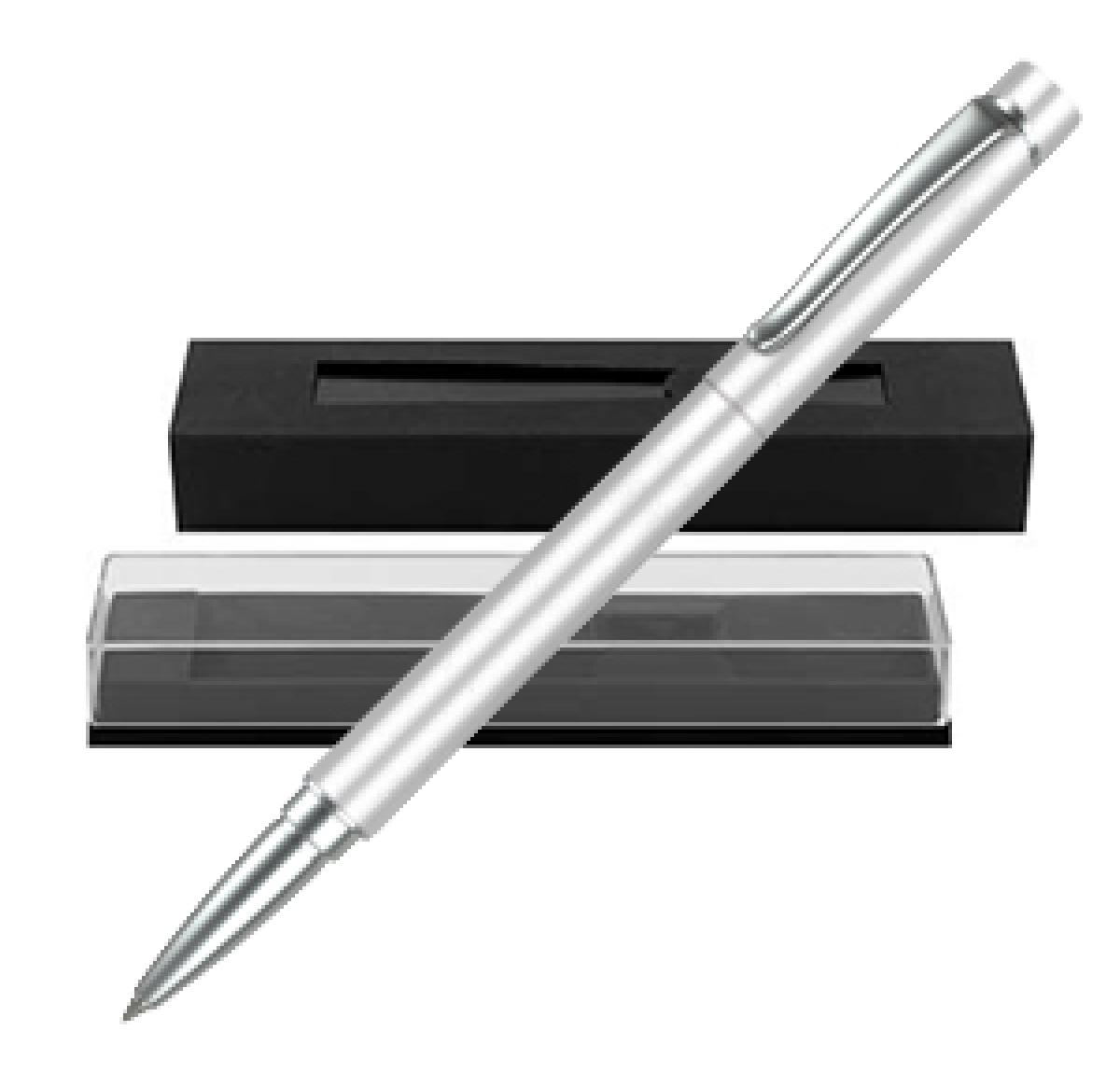 Quality capped rollerball with satin silver finish and precision German refill. Supplied with Presentation Box.