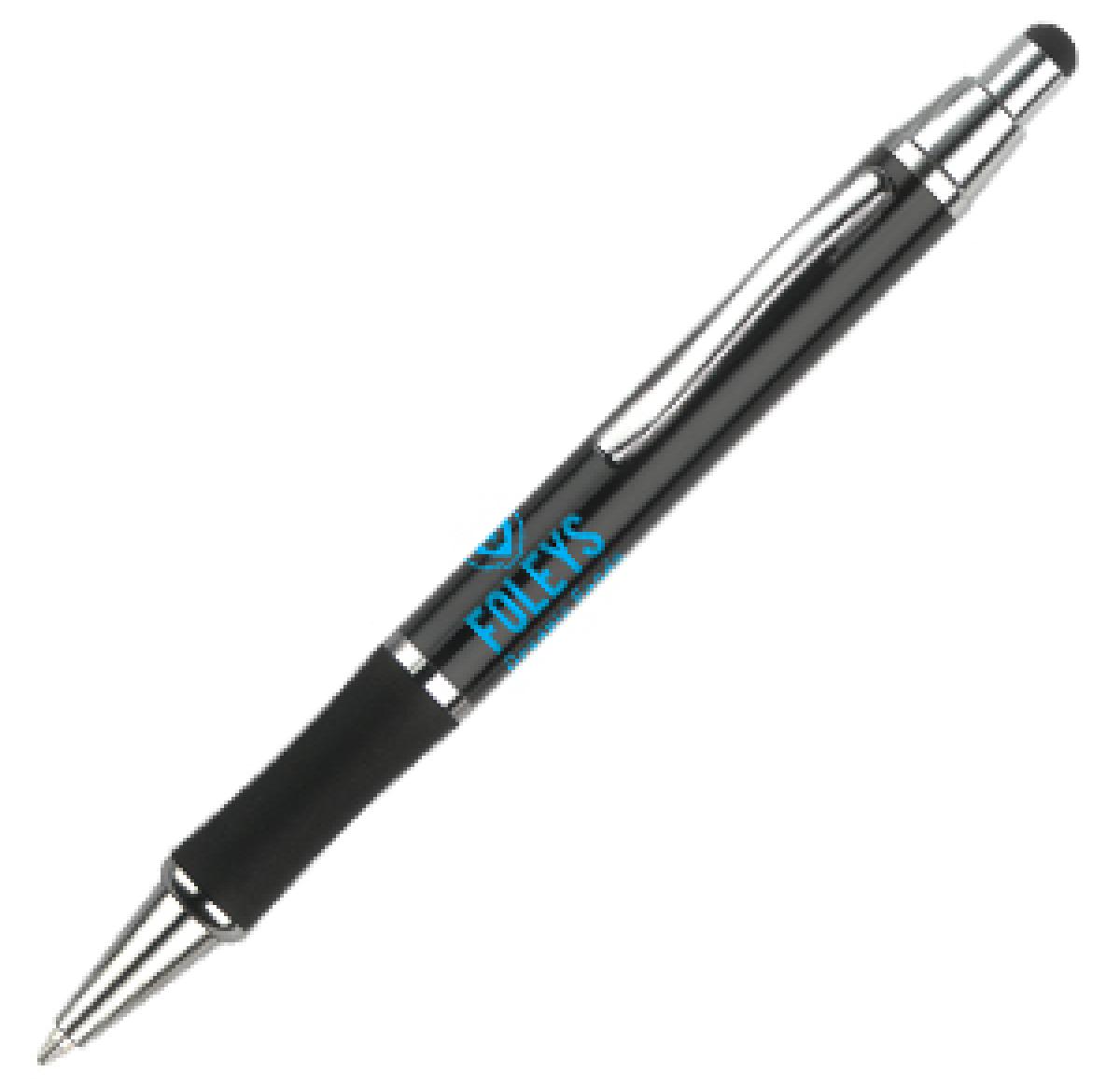 Retractable aluminium ballpen with highly lacquered finish. Includes touch screen stylus. Can be laser engraved to a choice of two positions. Supplied with presentation tube.