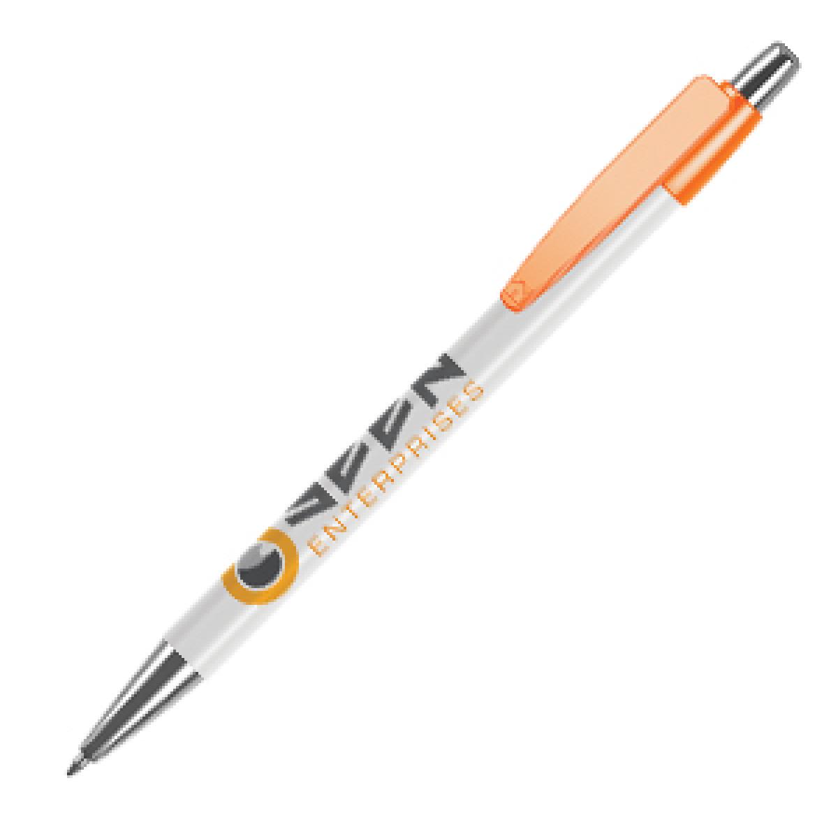 Attractive retractable ballpen with white body and large print area that can be printed with full colour wrap 360degrees around the barrel. New to the range is a range of specialist Logo Clips. Choose your clip shape and fit it with a design of your choic??