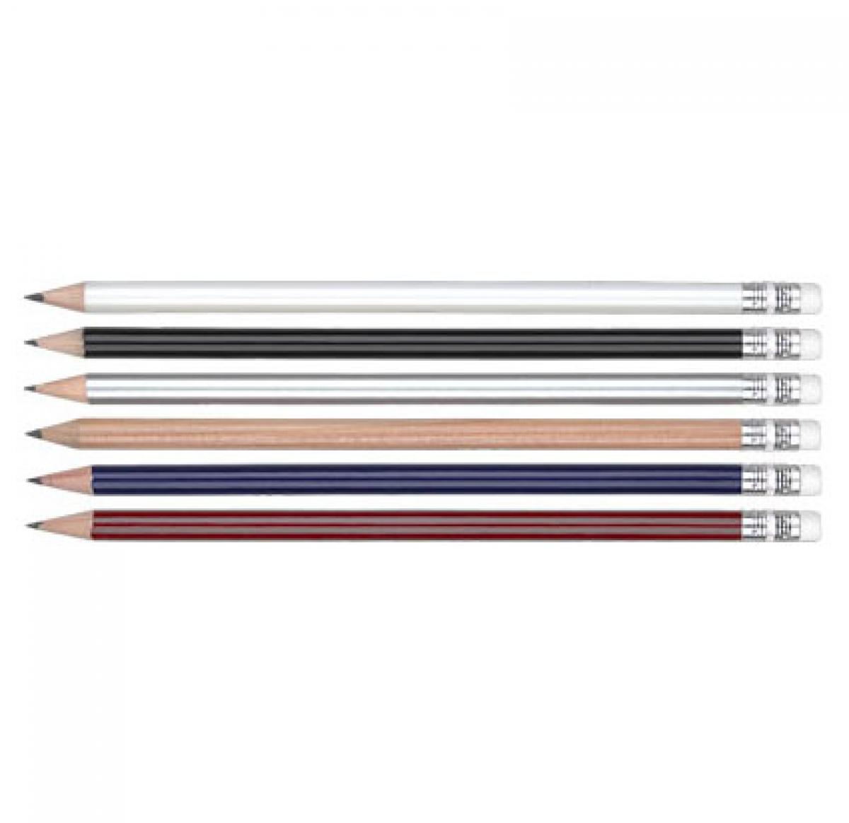 Round wooden pencil in quality paint finish. Silver ferrule and White Eraser.