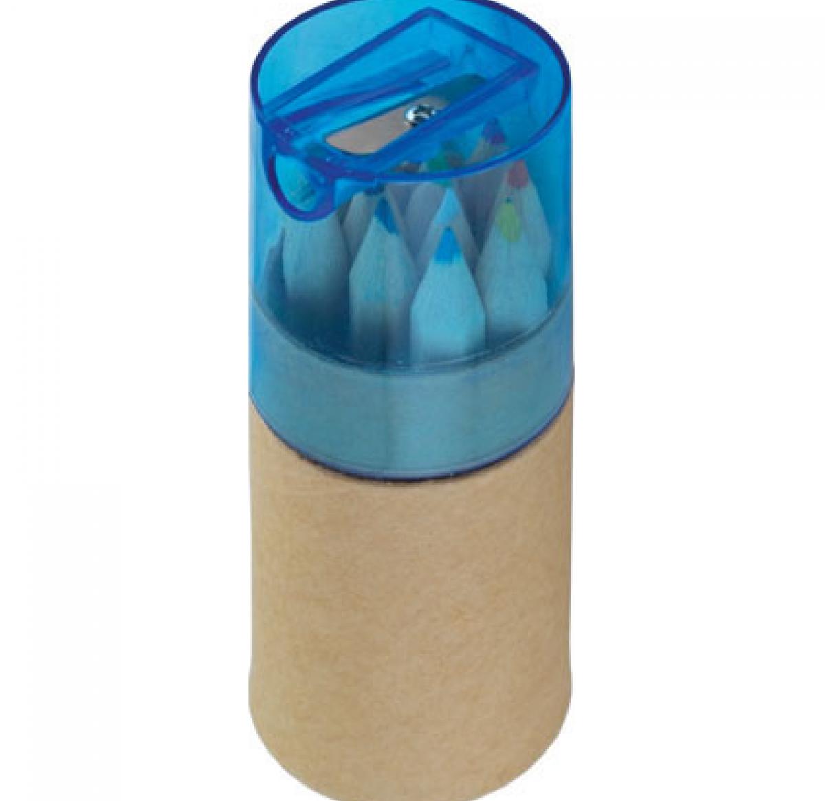 12 Half size pencils in a cardboard tube and plastic cap with an integrated pencil sharpener. Suitable for single colour printing only.