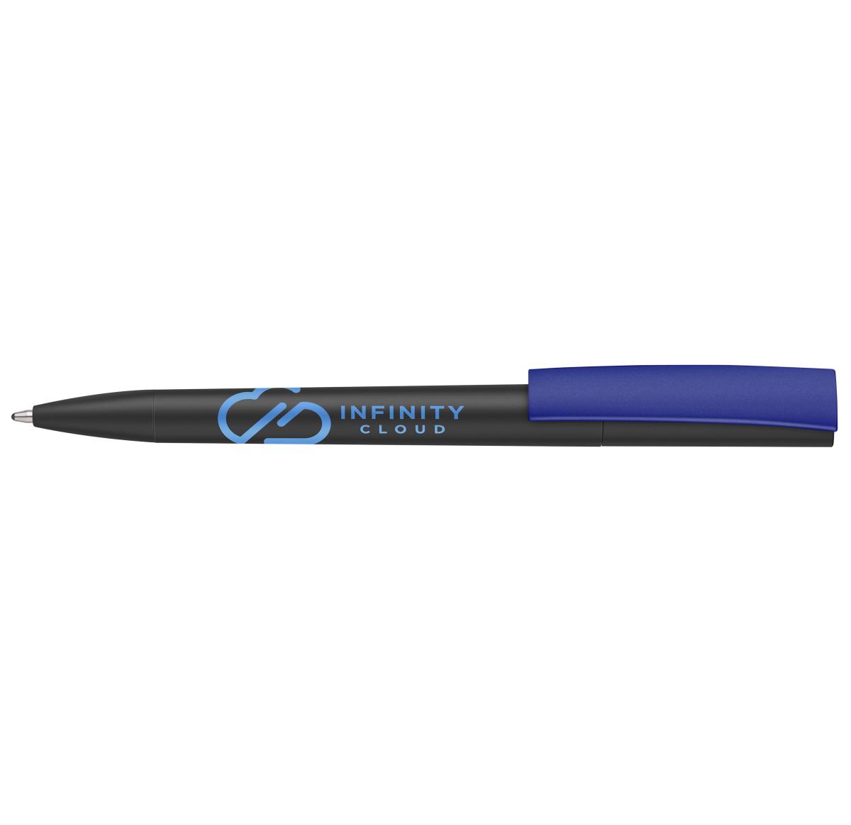 Push button ballpen with eco-friendly credentials as it is manufactured from recycled plastic from post consumer household equipment. Solid black barrel with a choice of red, blue or black clip. Available in: Black, Blue, Red