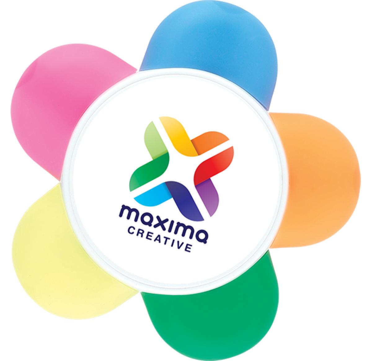 Quality flat highlighter manufactured in imprintable plastic with a Full Colour Print design Available in: White