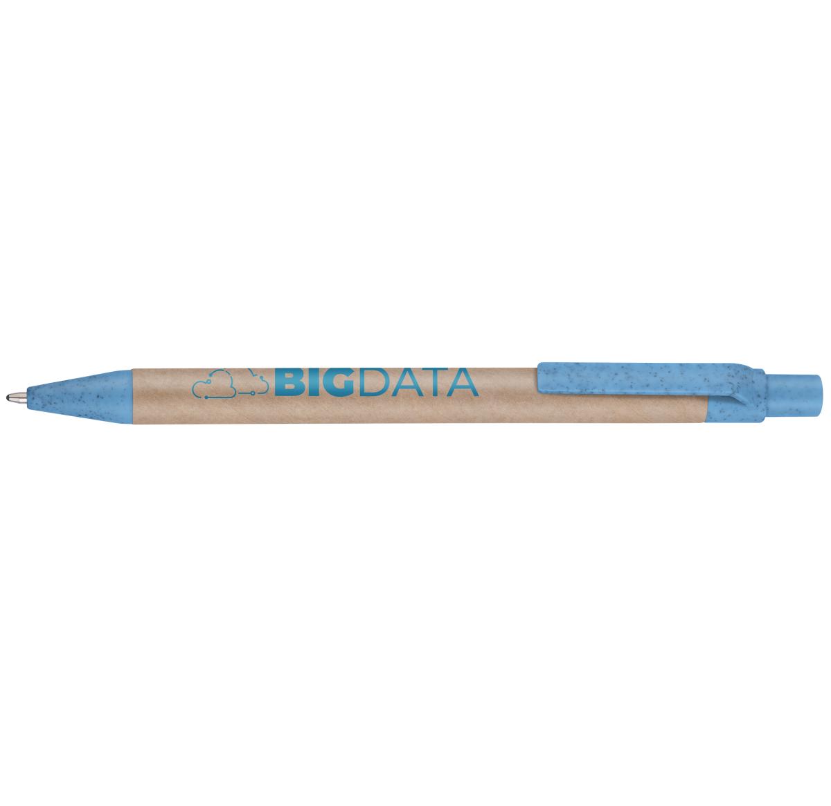 Eco-friendly push-button ballpen with a recycled paper barrel and wheat straw trim. A great alternative to traditional plastic pens and ideal for expressing your consideration for the environment. A German Dokumental® ink refill ensures up to 1000 metres of writing length and smooth, even ink distribution. Available in: Natural, Red, Black, Blue, Green