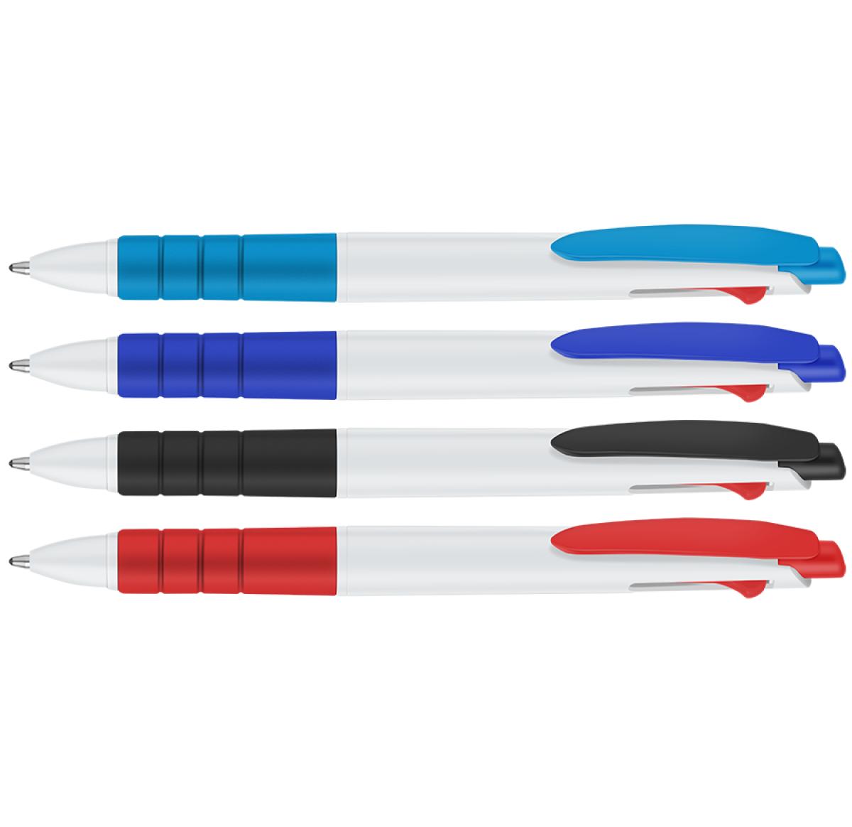 Multifunctional, retractable ballpen with a choice of - black, blue or red ink refills. The coloured clip has a matching coloured grip which makes for a comfortable writing experience. Available in: Black, Blue, Cyan, Red