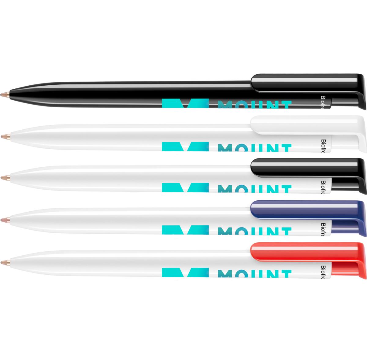 Absolute® Ballpen offering complete antimicrobial protection that lasts the lifetime of the product. Offered with industry-first antimicrobial Biomaster spot colour printing or standard full colour printing. Available in: All Black, All White, White/Black, White/Blue, White/Red