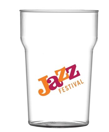 The plastic Economy Pint Glass stacks well and is UK manufactured in crystal polystyrene – strong, rigid and reusable glasswash safe. Great to use for short term, occasional, one off events and can be printed in up to 4 spot colours.