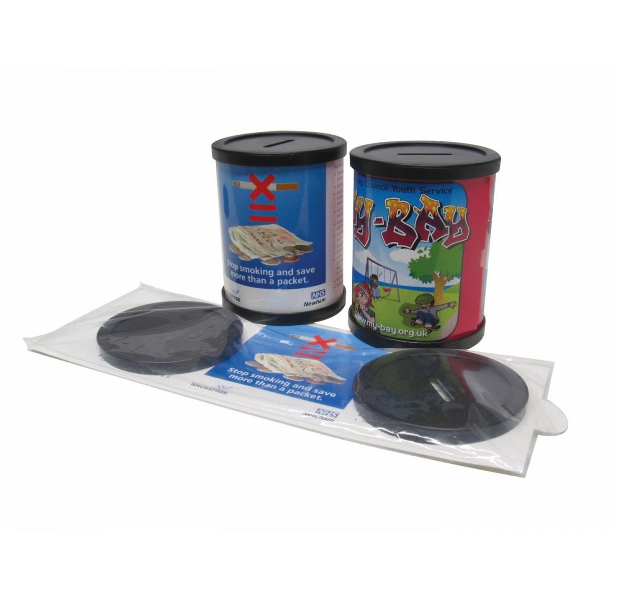 Supplied flat packed, and with generous print areas, a great mail out product. The round pen pot has plastic end caps and cardboard sides.|~