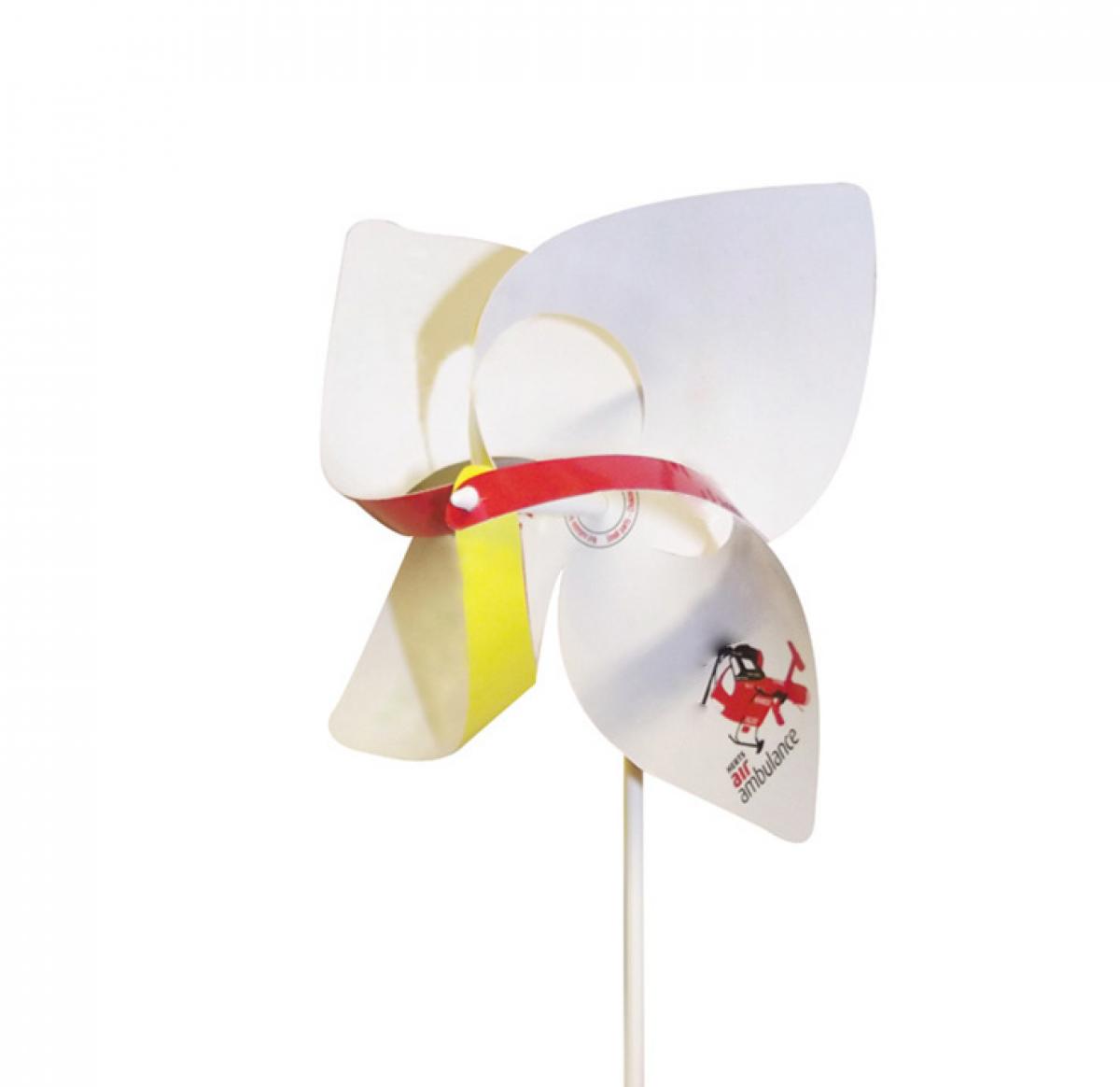 Supplied Flat Pack, this fun little windmill can be printed up to 4 col process on the vanes and comes complete with a plastic stem ready to assemble.There are 3 designs to choose from Breeze, Mistral and Chinook