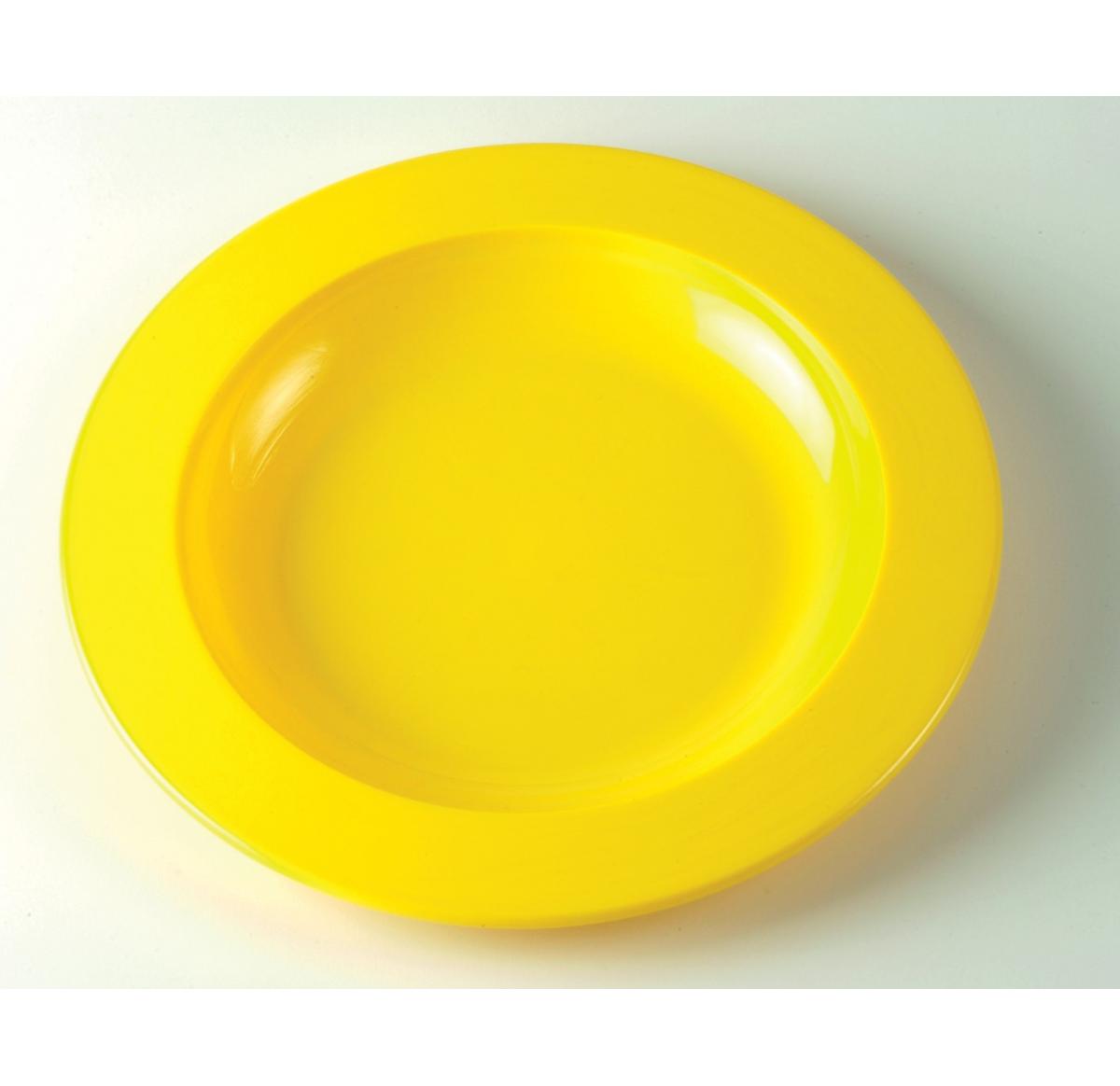A dishwasher proof plastic plate It can be printed round the rim in up to 4 spot colours. Available in a wide range of standard colours
