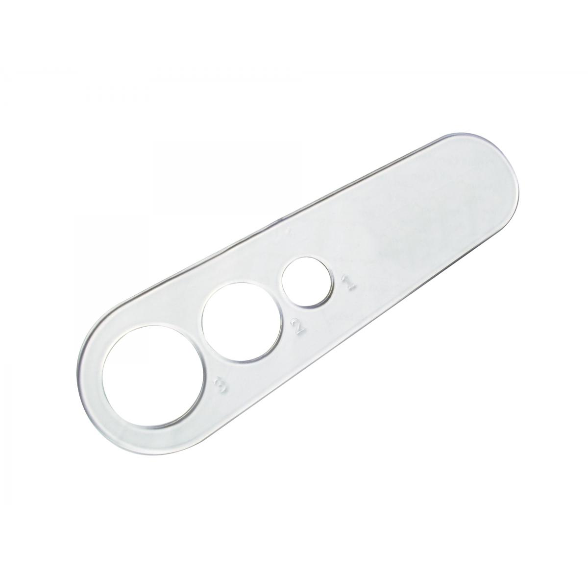 A standard shaped measure that has 1/2/3 person holes. Can be printed on both sides in up to 4 spot colours. Custom shaped designs are also an option.
