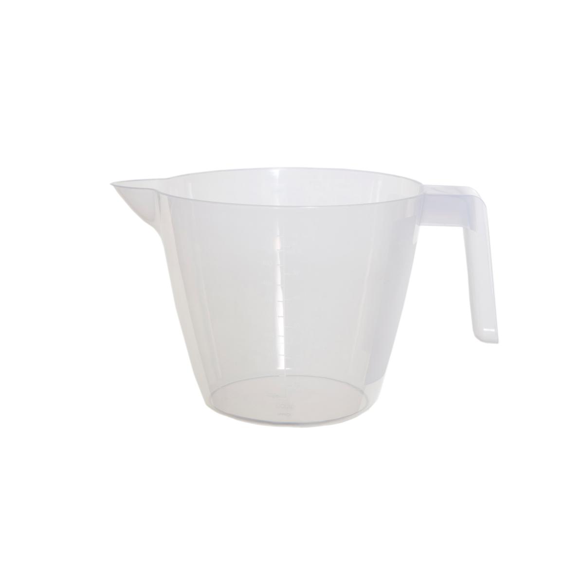 A pair of all plastic jugs with a variety of measures on each side. Great for kitchen, factory or workshop.