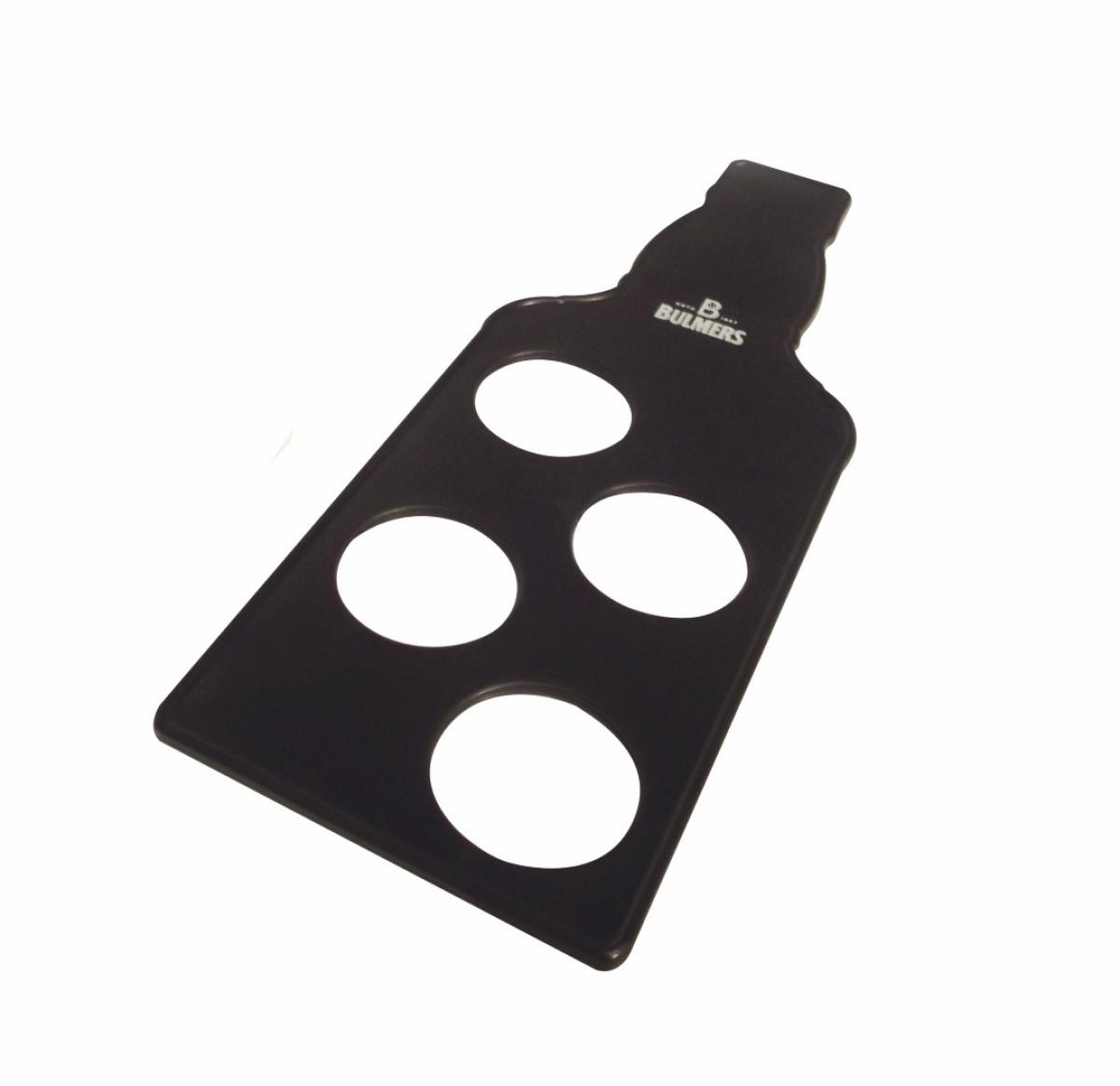 The smaller bottle shaped shotglass holder will hold up to 4 shots and has a large branding area. It can be moulded in a variety of colours and can be printed up to 4 spot colours.