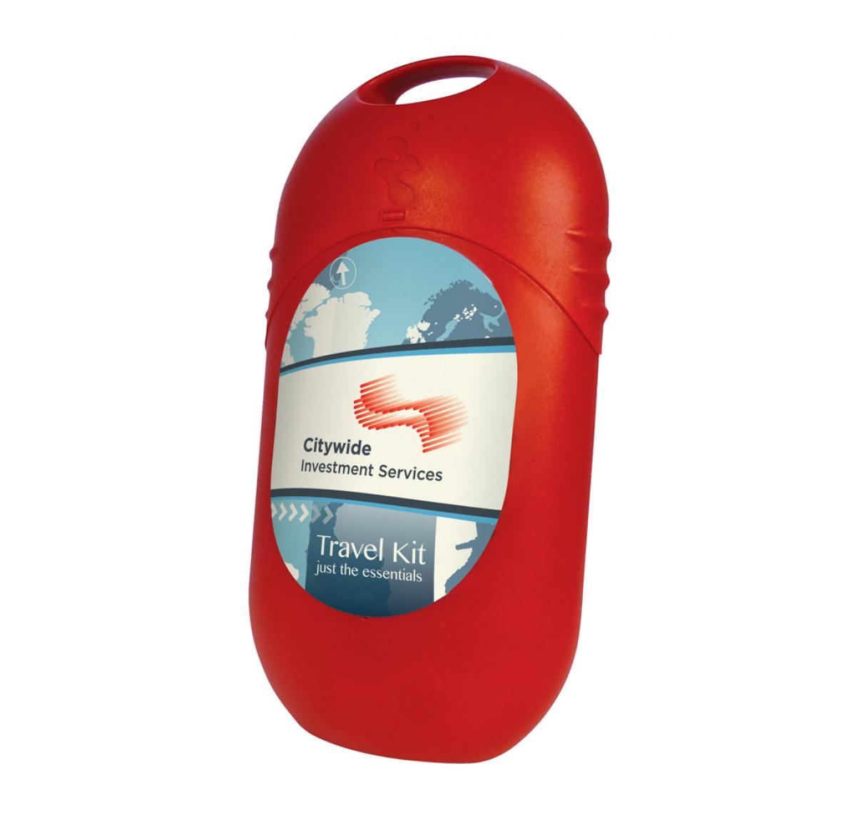 The Travel kit contains just what you might need when you’re on your travels, such as a pen and pad, antiseptic wipes and tissues.
