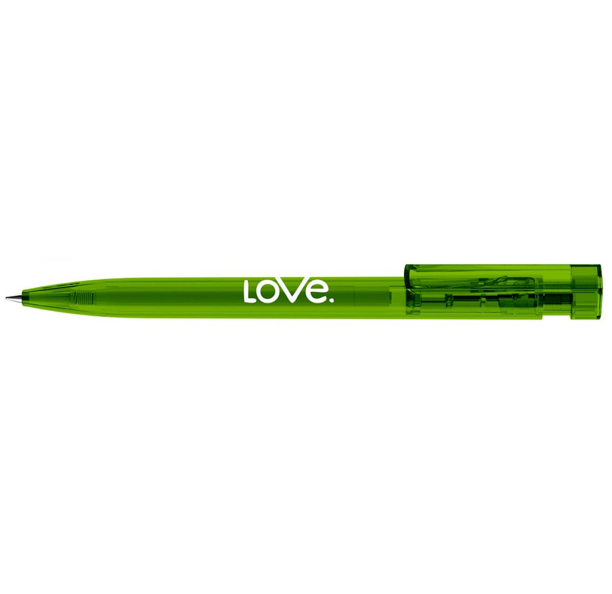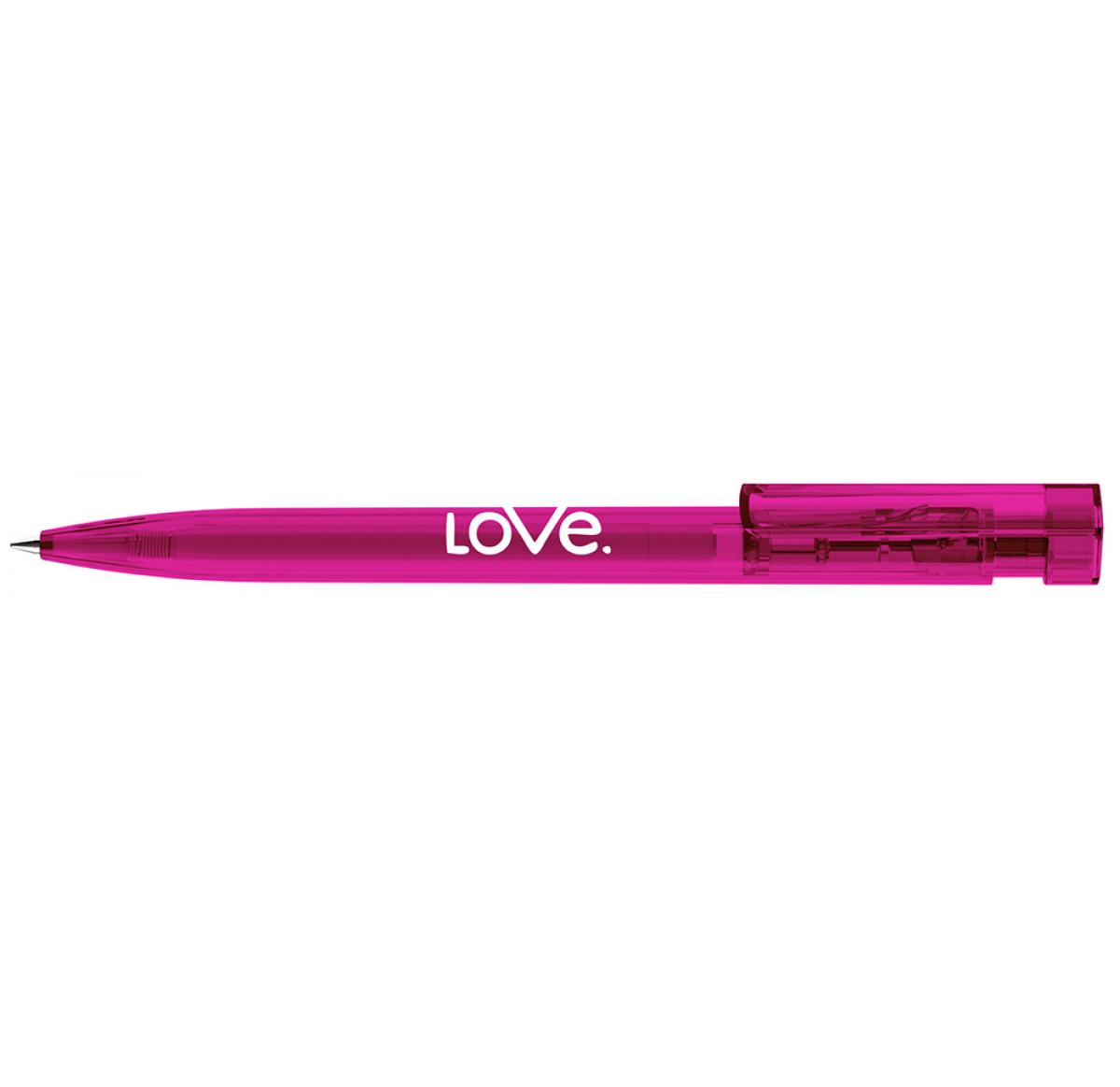 Long live the freedom of your advertising message! Transparent high-gloss finish ballpen, fitted with large capacity Magic Flow refill.