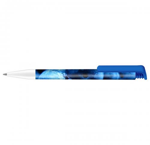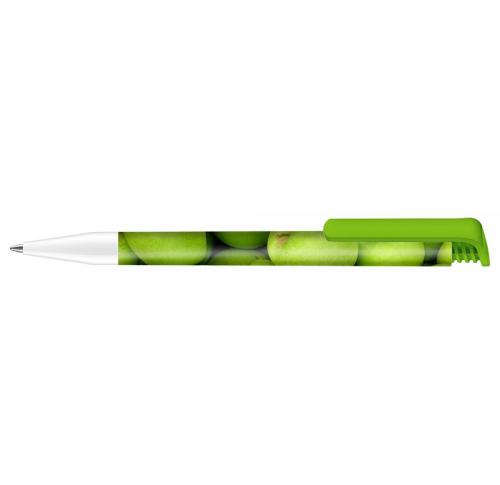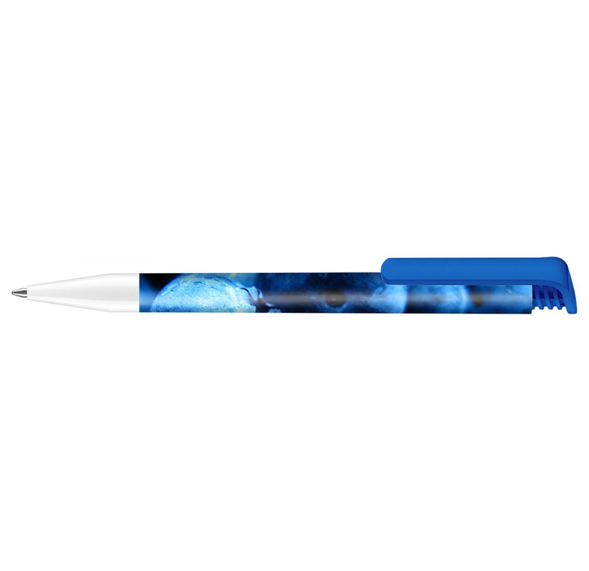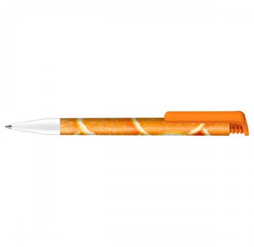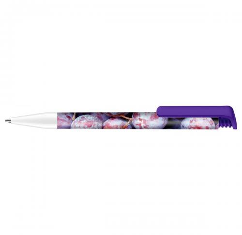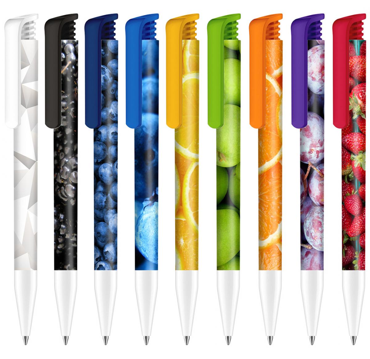 Evergreen and million seller. Opaque high-gloss finish ballpen with white barrel, featuring striking push-clip in one of 16 popular colours. Fitted with large capacity Magic Flow refill. Available with full colour digital wrap to the barrel - photo-quality print up to a maximum of 1200dpi to give your brand maximum impact. Also available as standard pen
